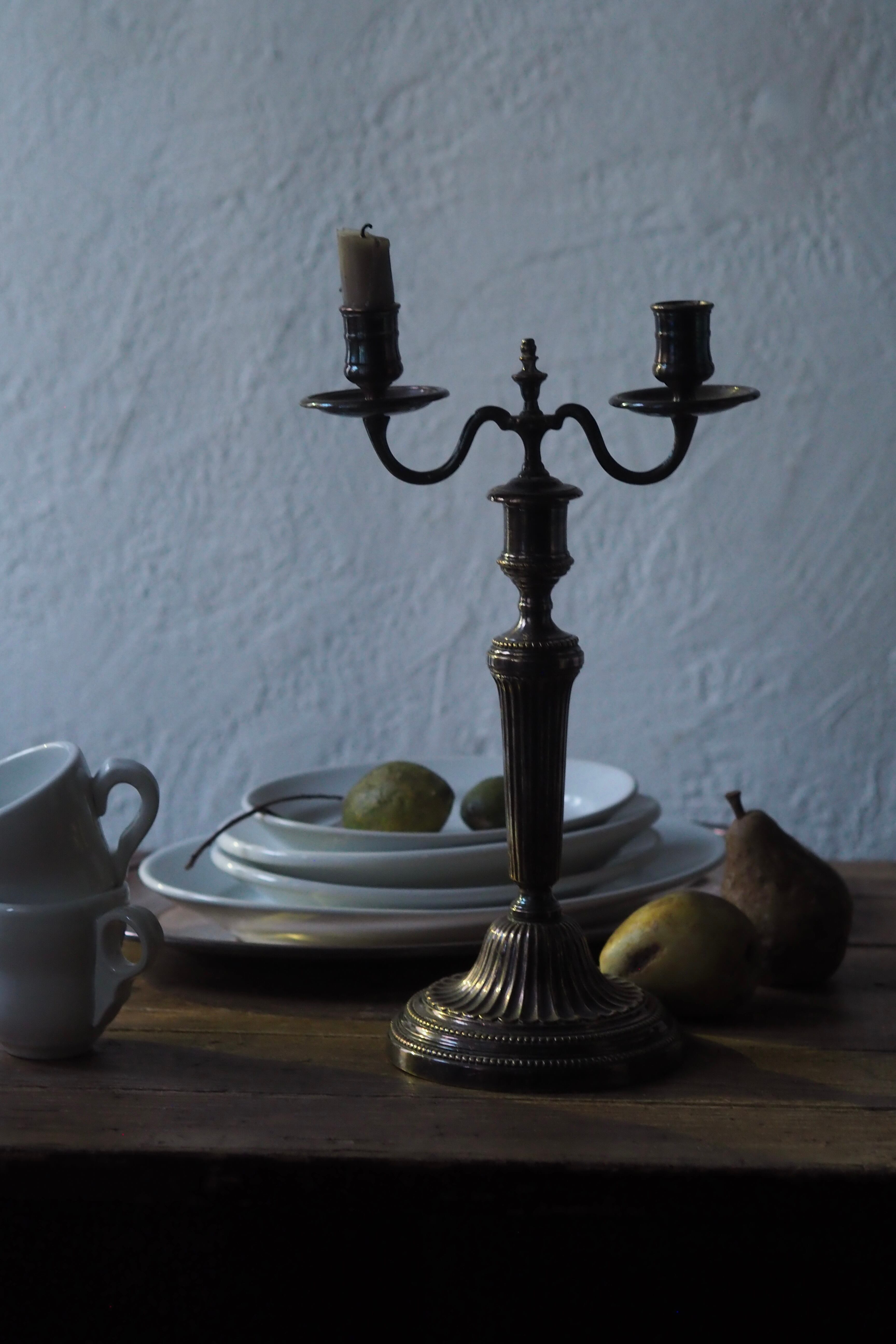 画像の蝋燭は付属致しません。全体敢えて磨き切っておりませんので金属磨きで磨けばもっと光ります。お好みで加減なさって下さい。
