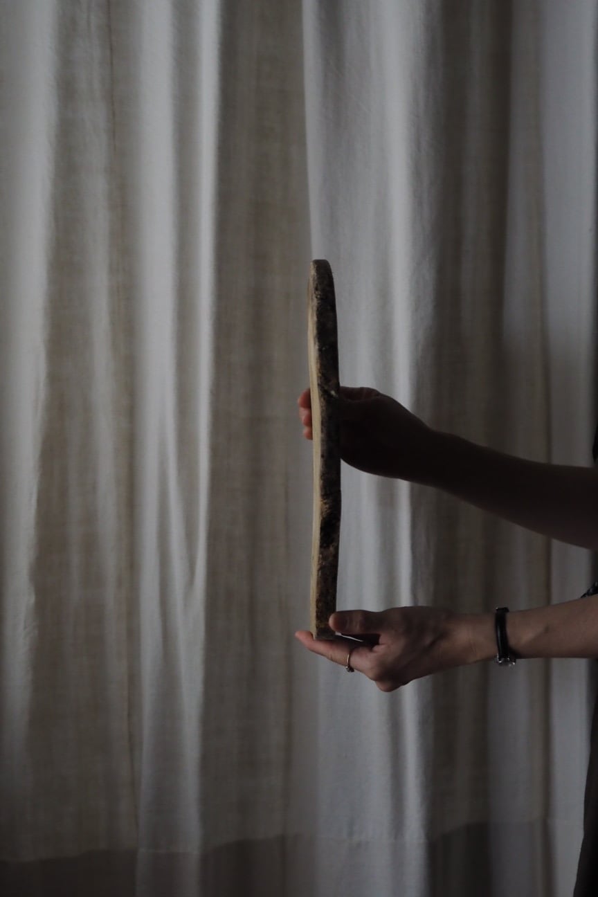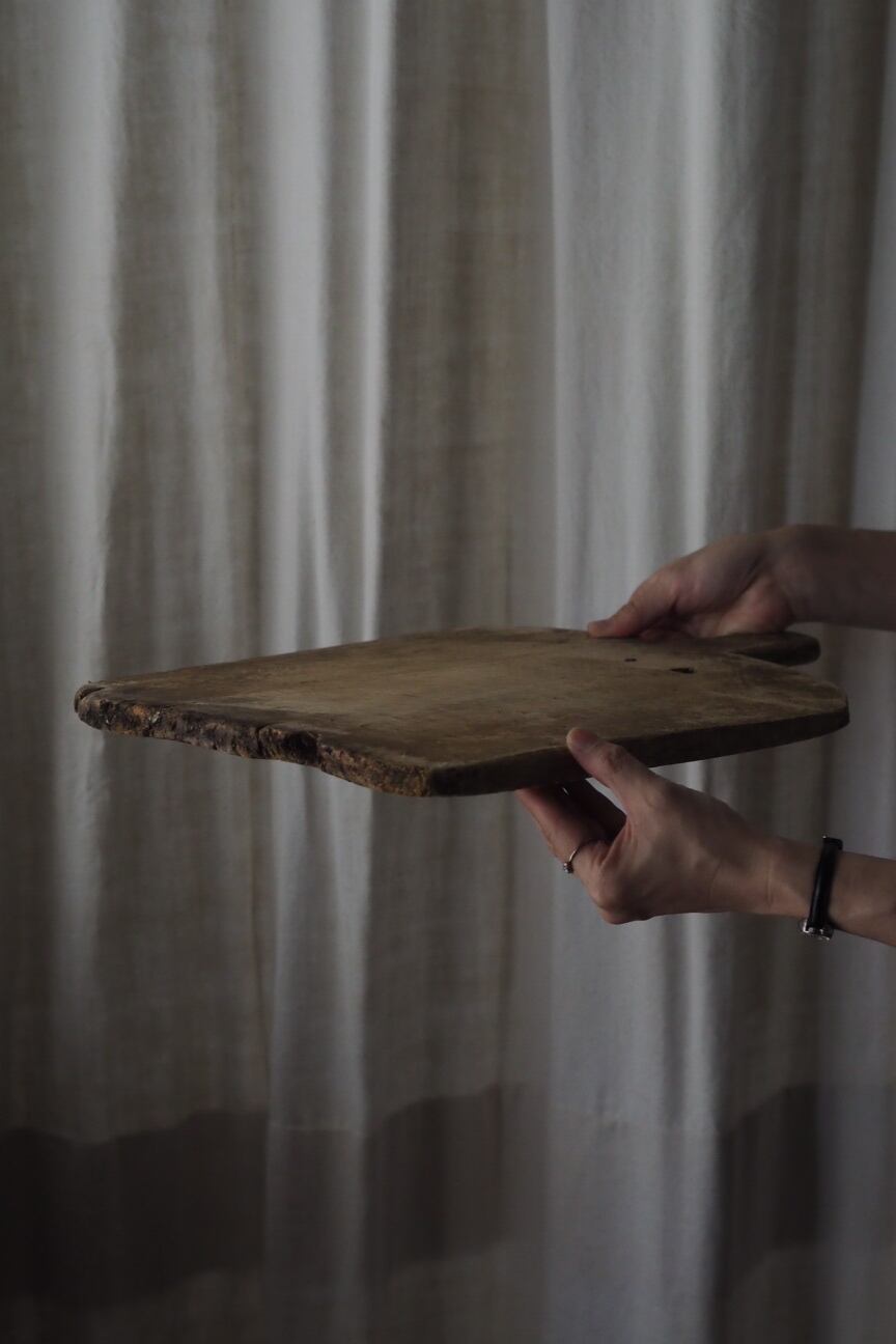 ハンドルも中心を取っておらず形もラフに、きっちり整ったとは逆の、くるみ材を素朴に切り出したまな板。