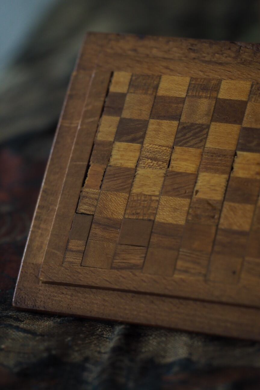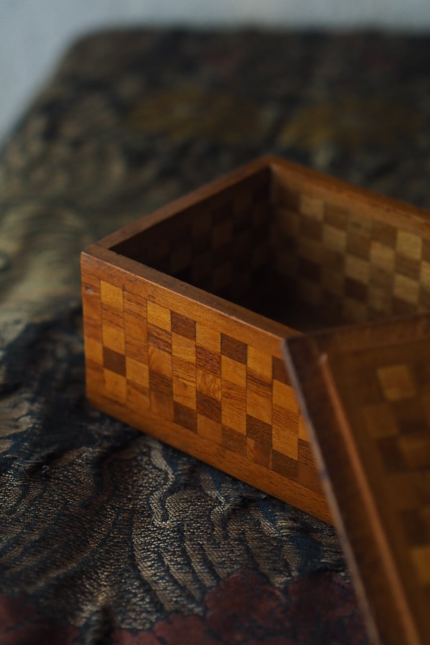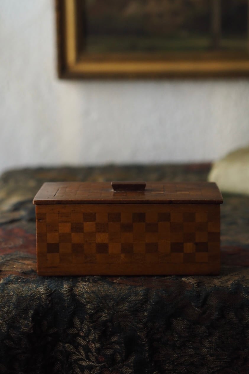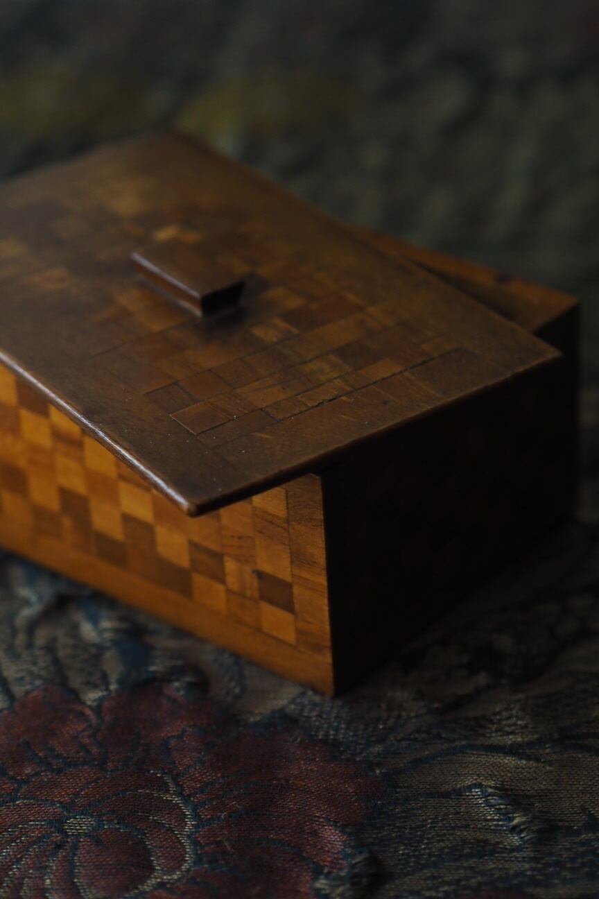 蓋おろか四方と表裏に至り細かい木象嵌が施されたアルチザンな小箱。