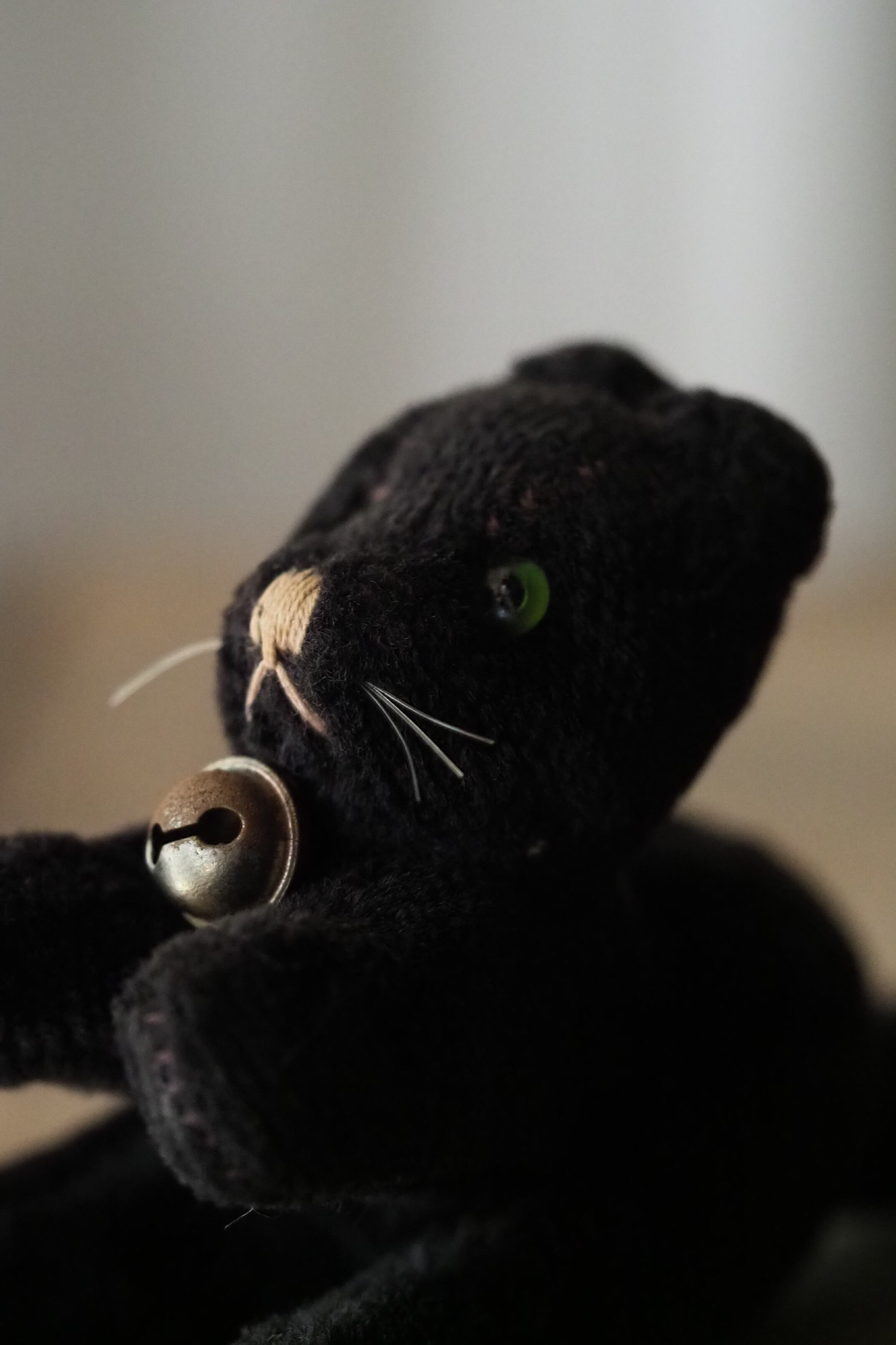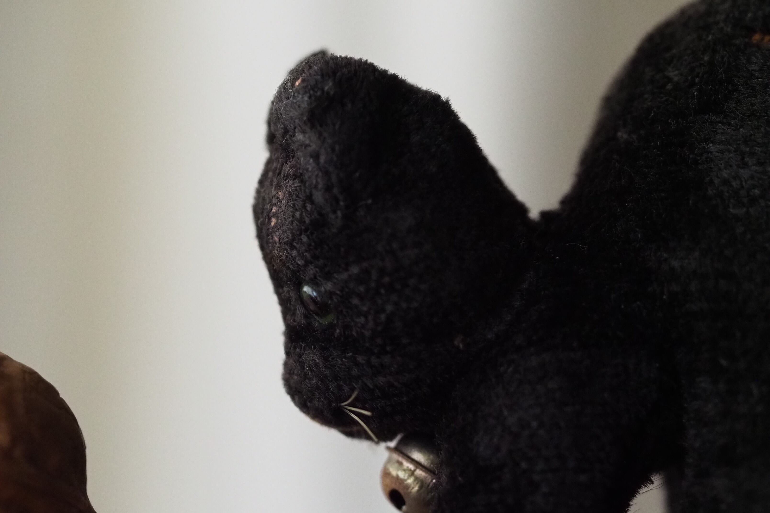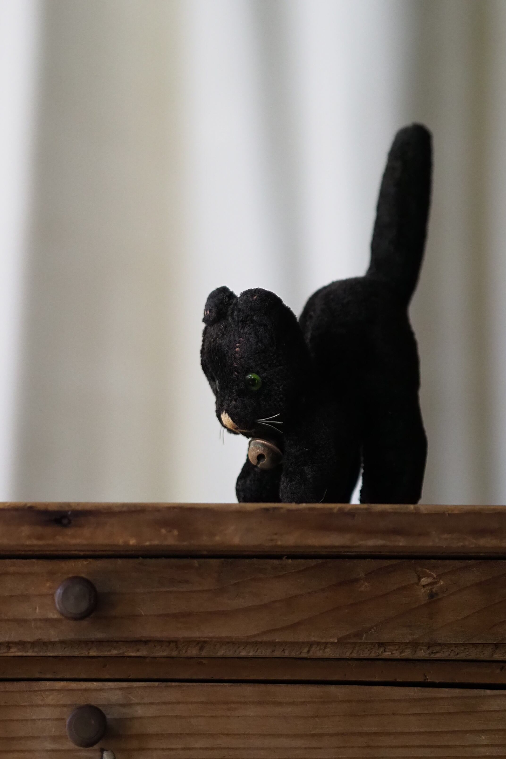 黄緑色のグラスアイはいかにも黒猫の凛とした雰囲気充分に。