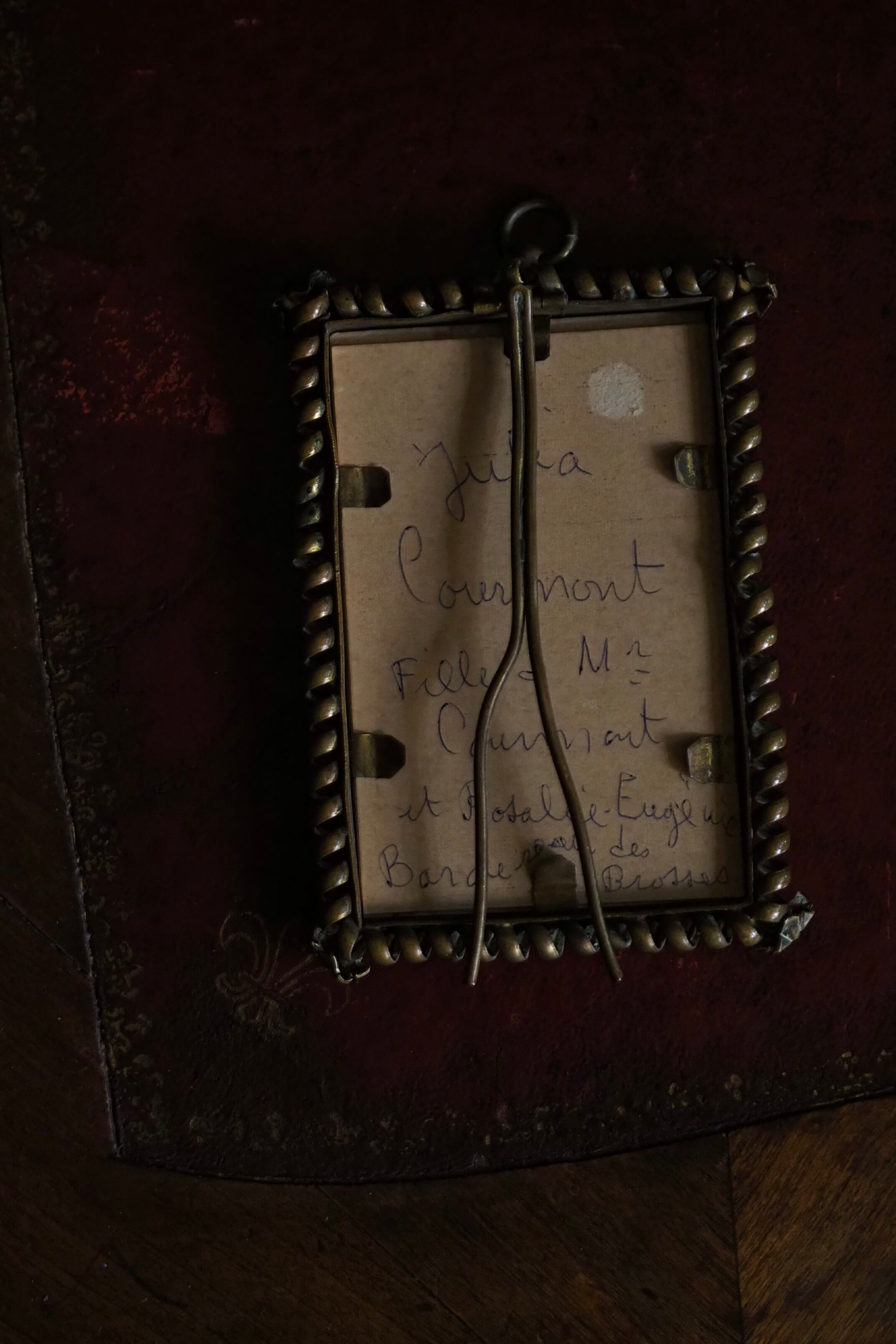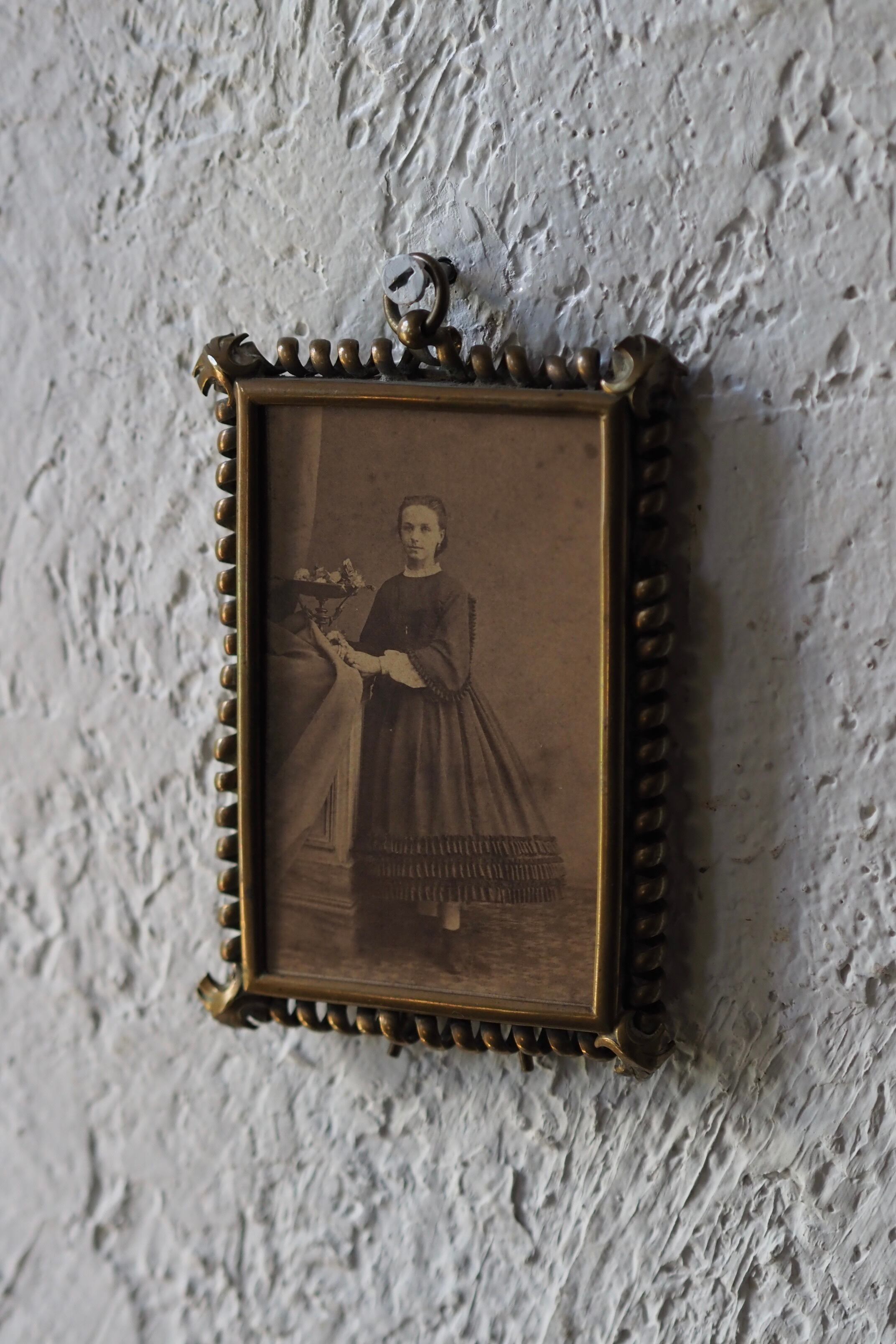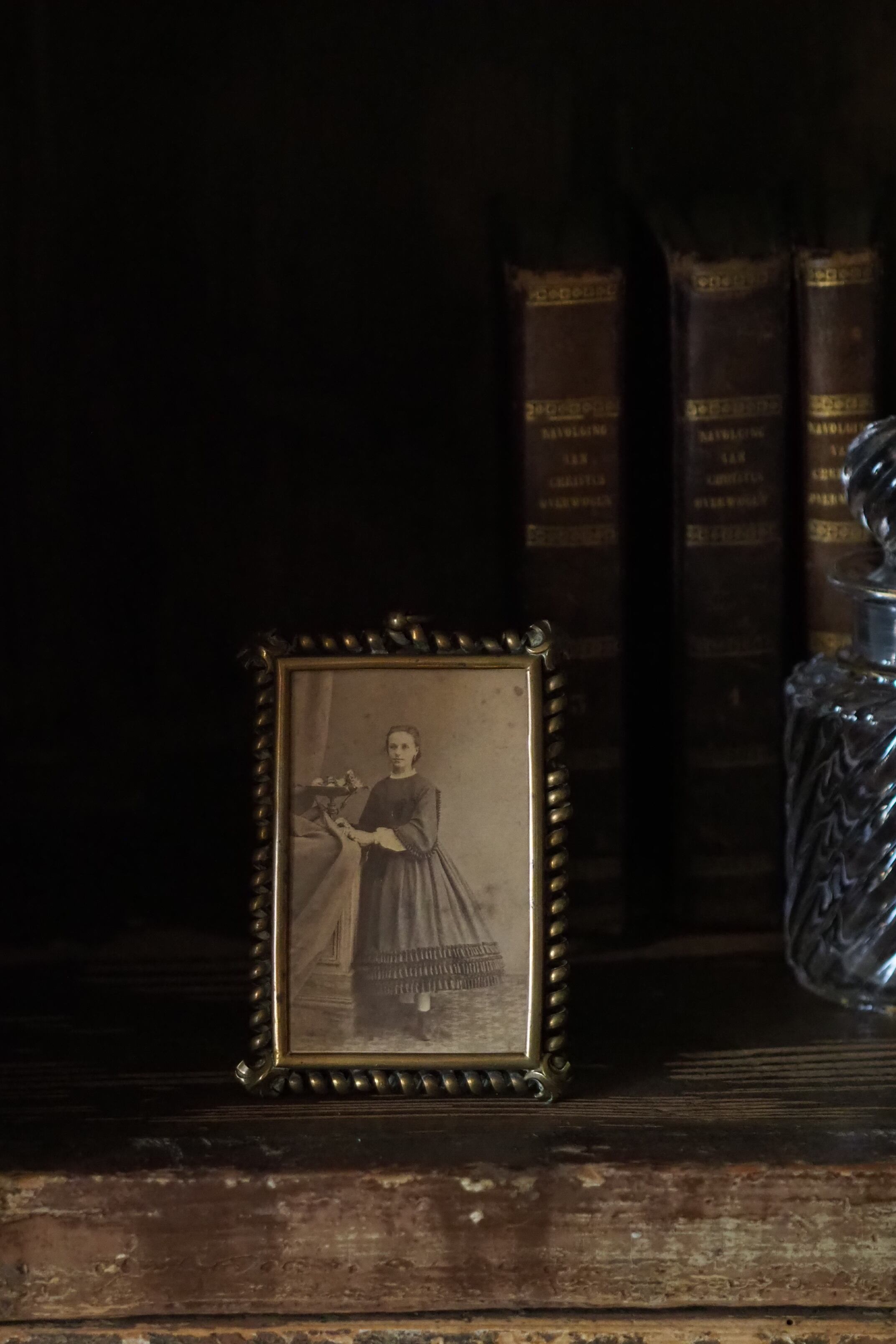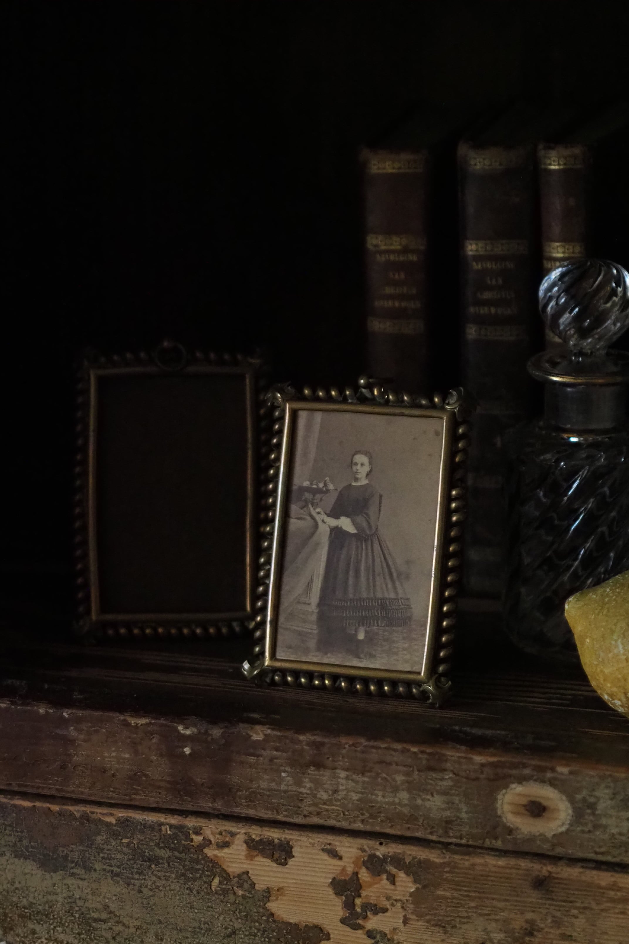 額装する小さな対象を品良く且つアンティークの趣きそのままに飾っている。