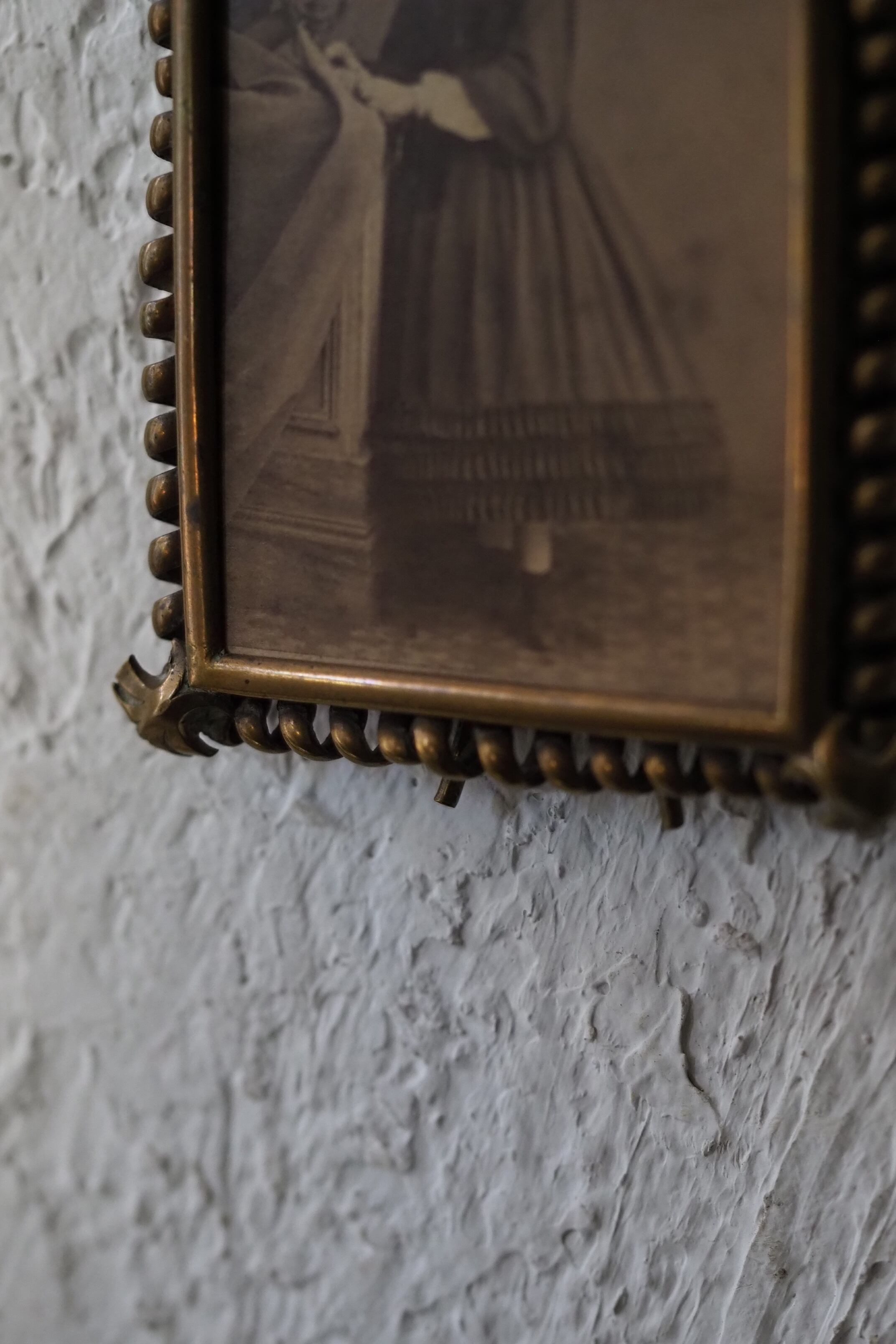 フジッリの様にくるくる巻いた真鍮の螺旋状パーツを枠にと、控えめなサイズのフォトフレーム。