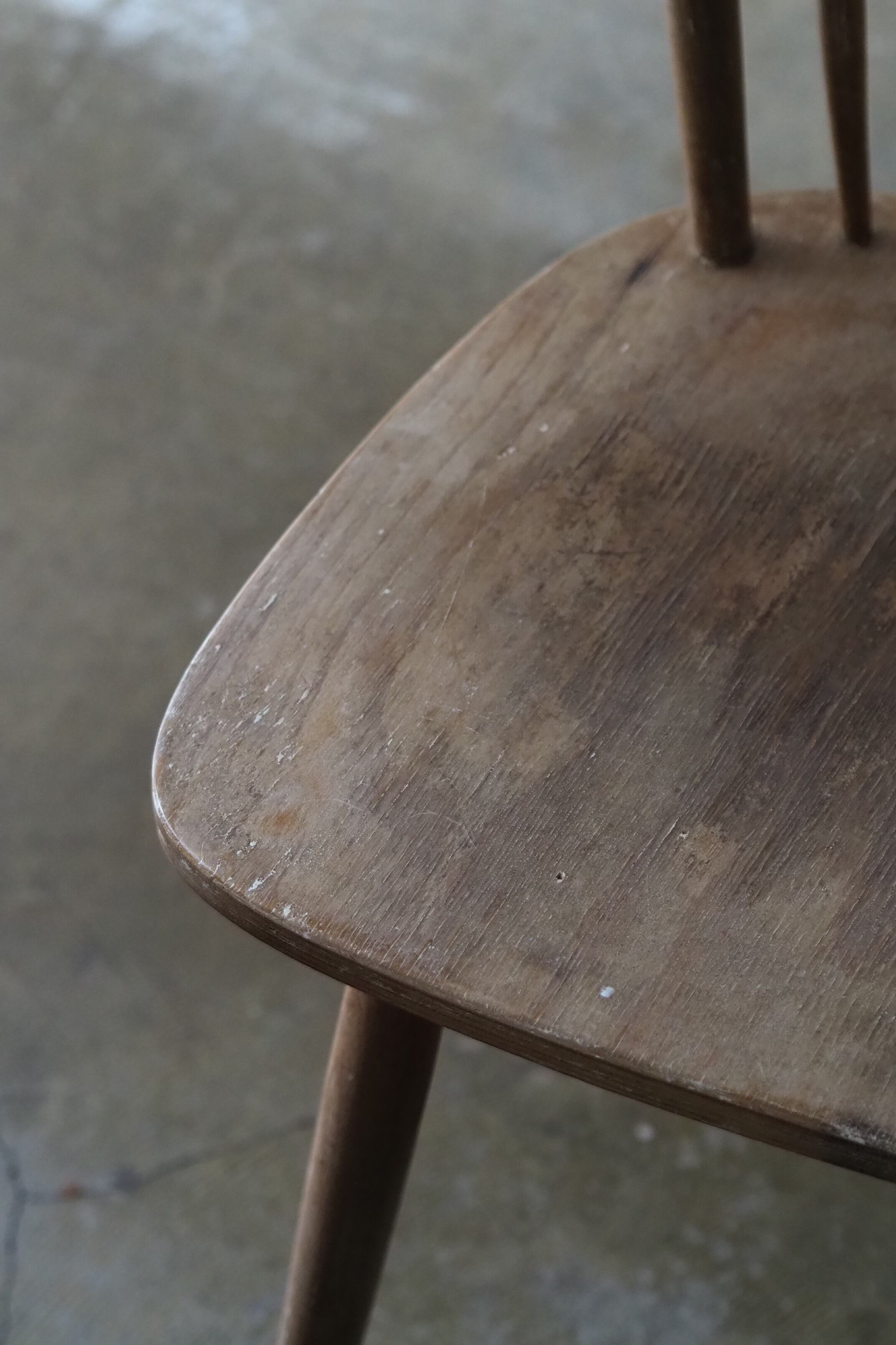 買い付け時既に塗装を剥がした状態でナチュラル、軽やかな印象を受ける椅子。