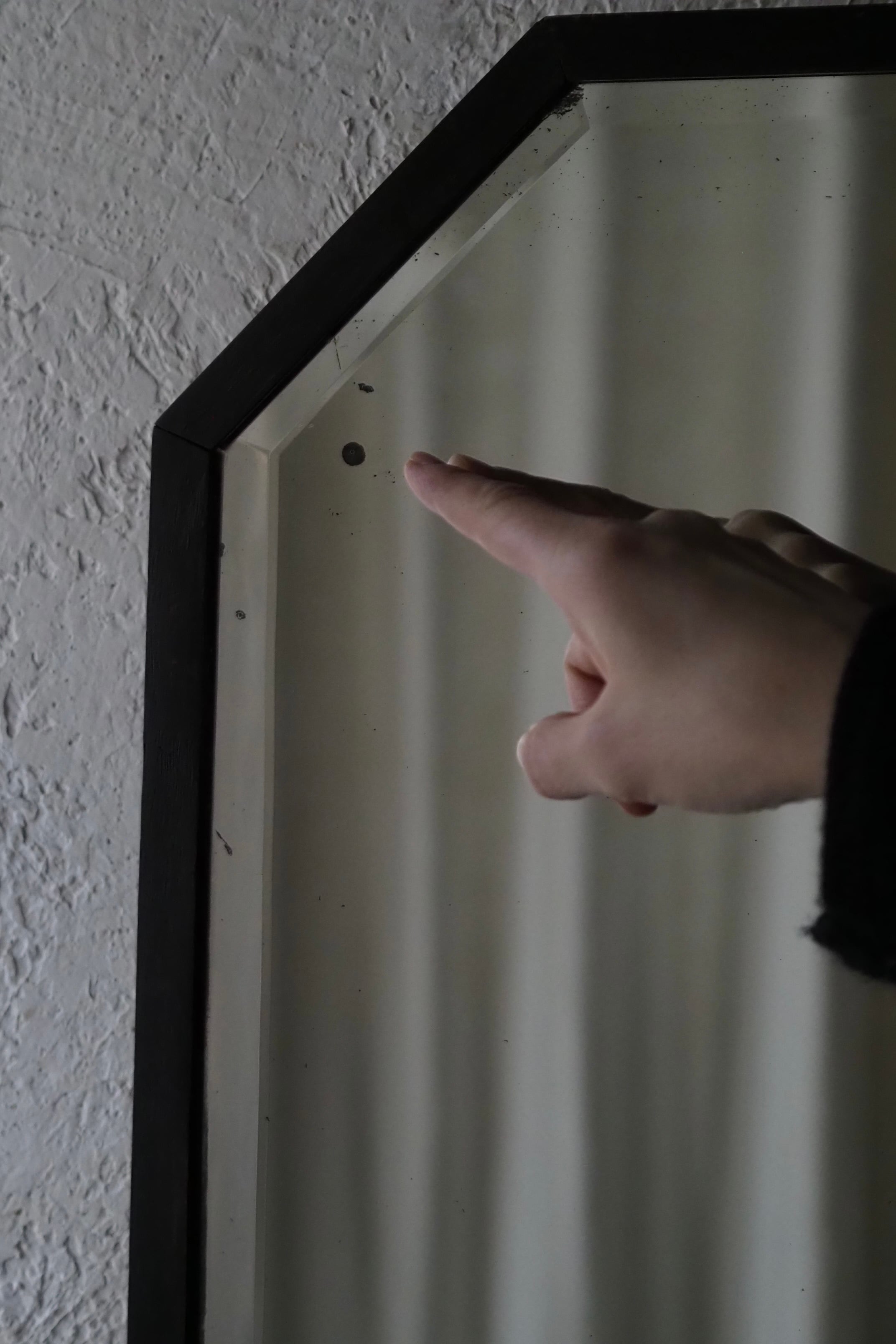 胸元まで映るそこそこの大きさがあり玄関先の身だしなみ鏡として、ショップでジュエリーの試着をするのに、或いは廊下の突き当たりに下げて空間を広く見せる効果を求めて。
