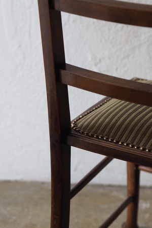 全体が繊細な細いパーツで作られていて統一感あり、1脚飾る様の椅子としてポツンと置いても1コーナー印象的なしつらえに。