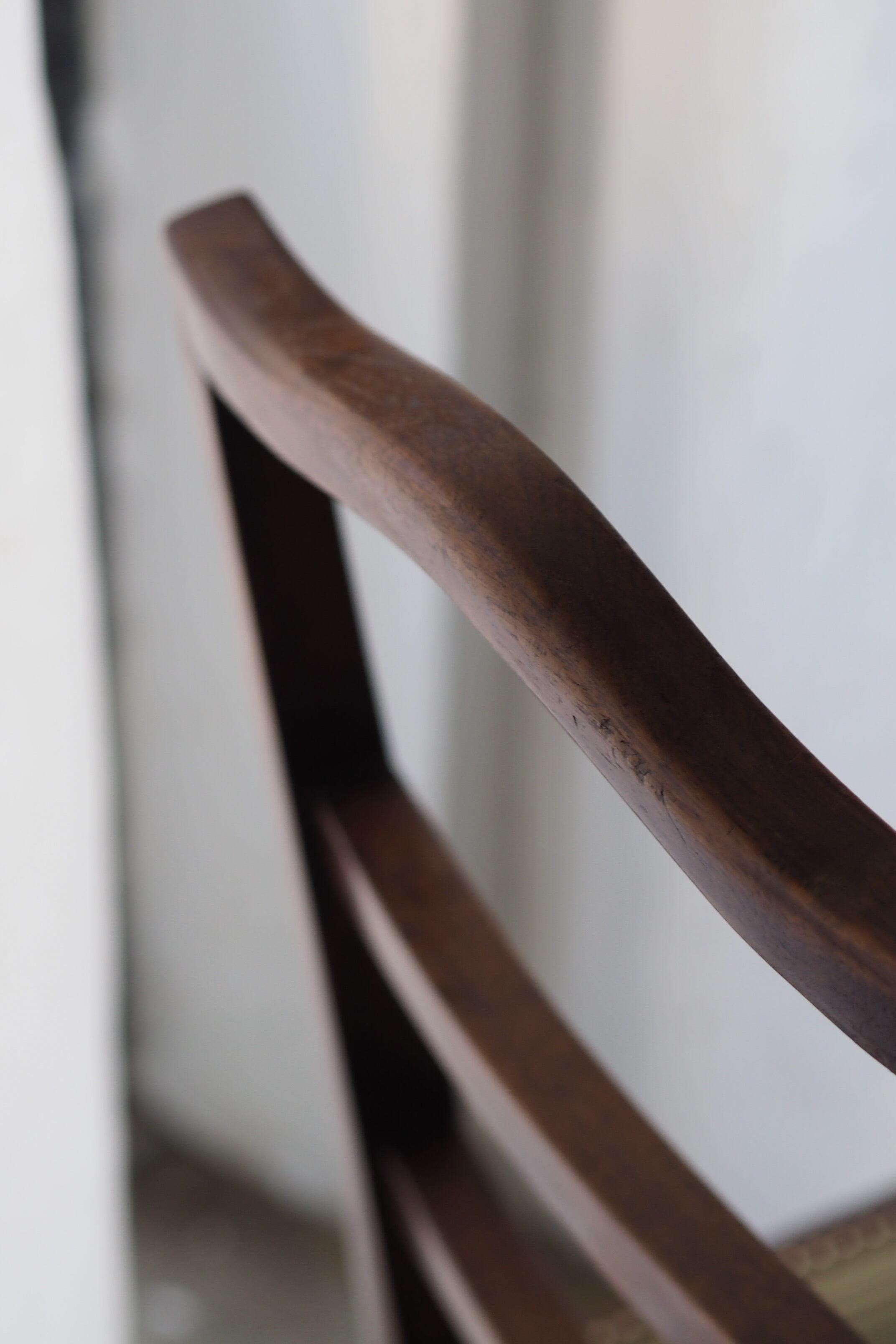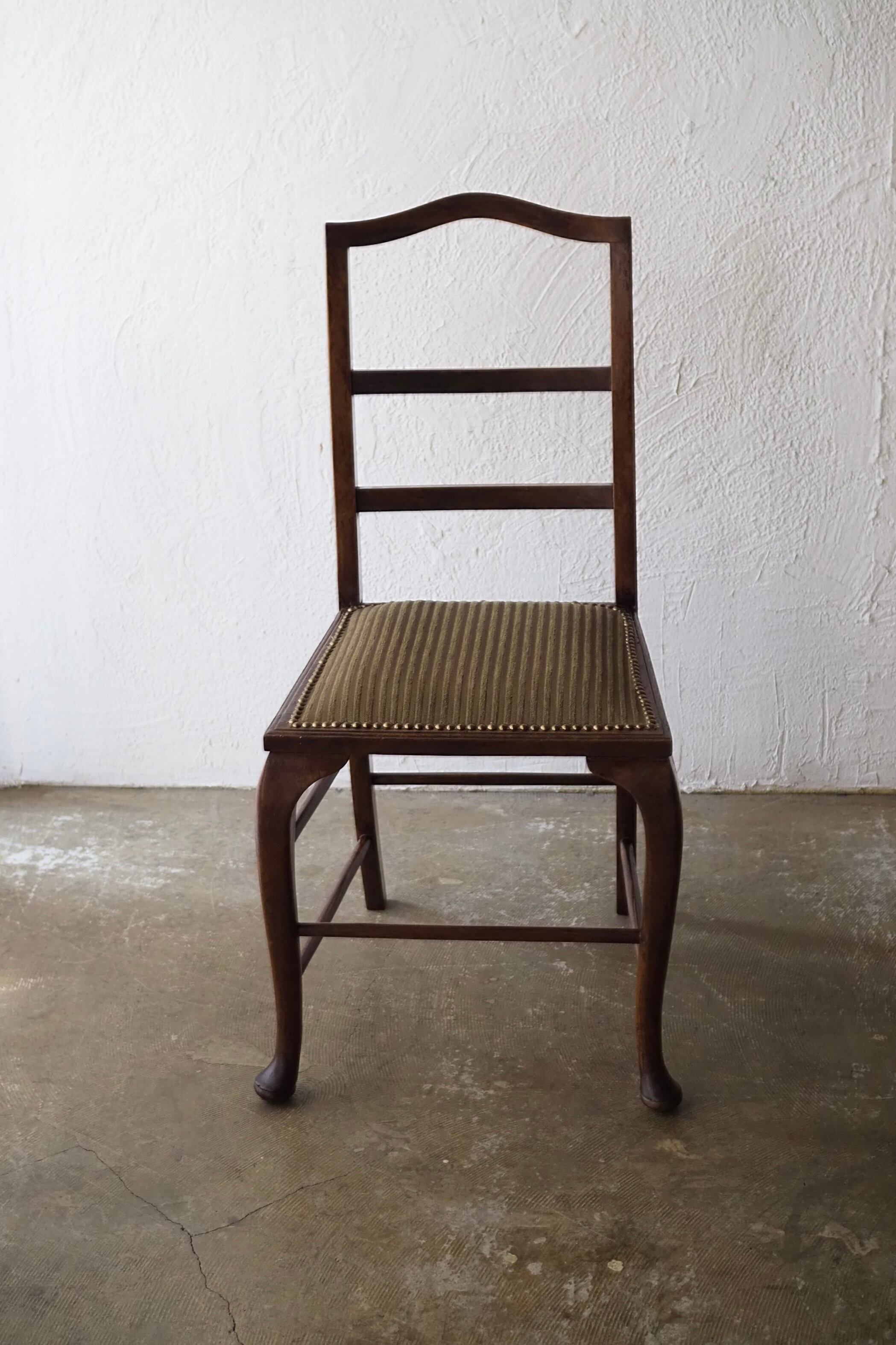 優雅な流れる曲線を描く、特徴的なクイーンアン様式の猫脚をしているイギリスのダイニング或いはサロンチェア。