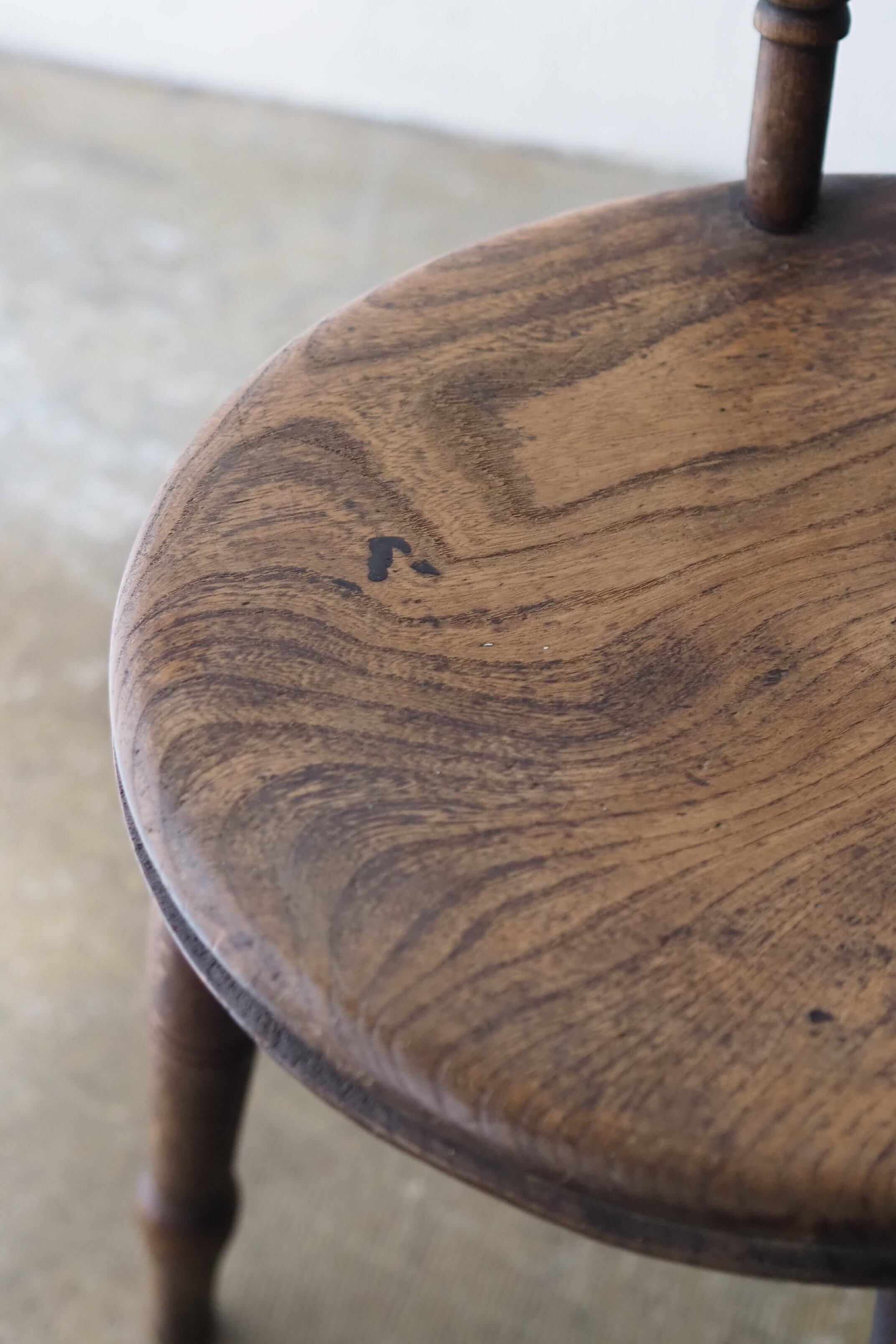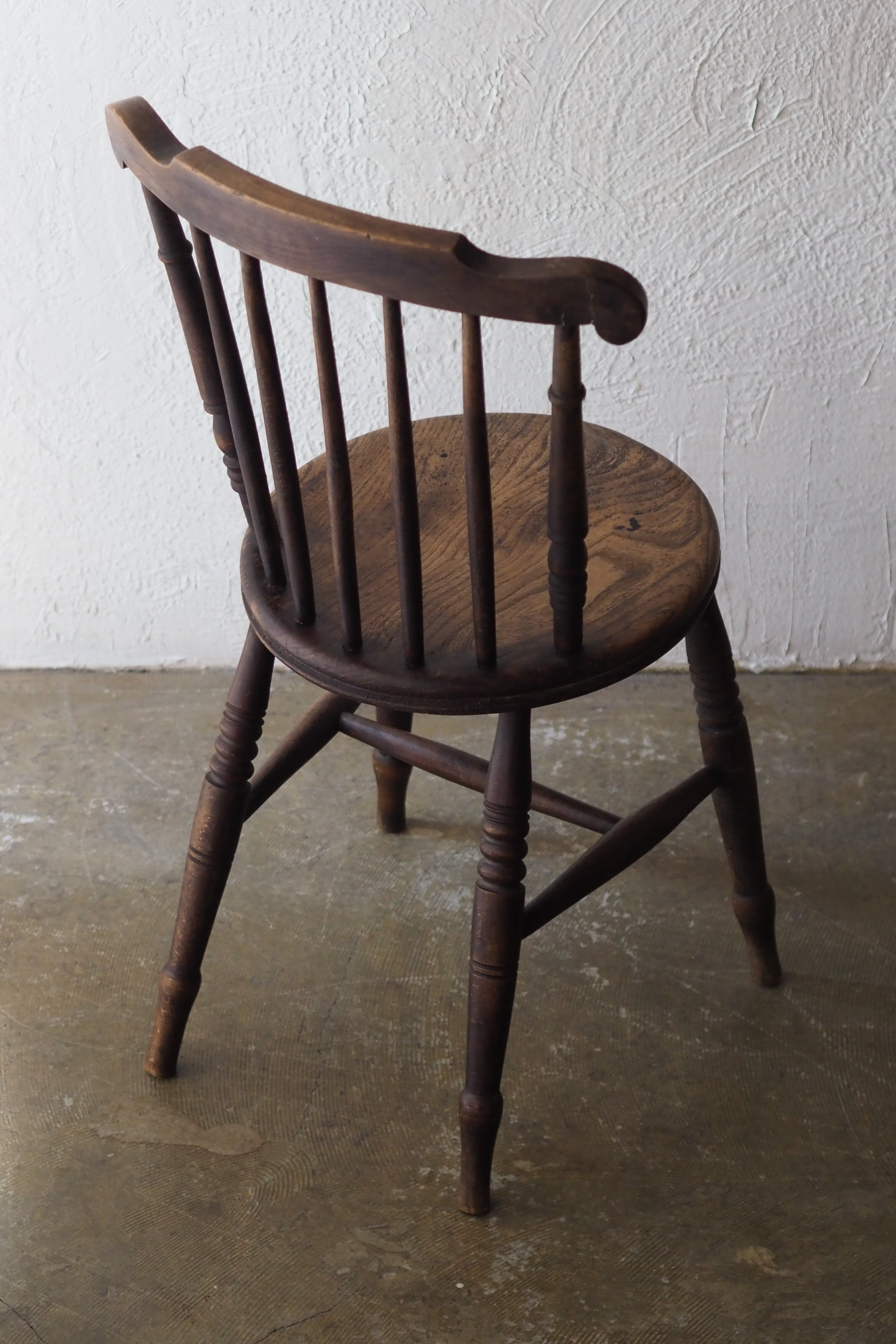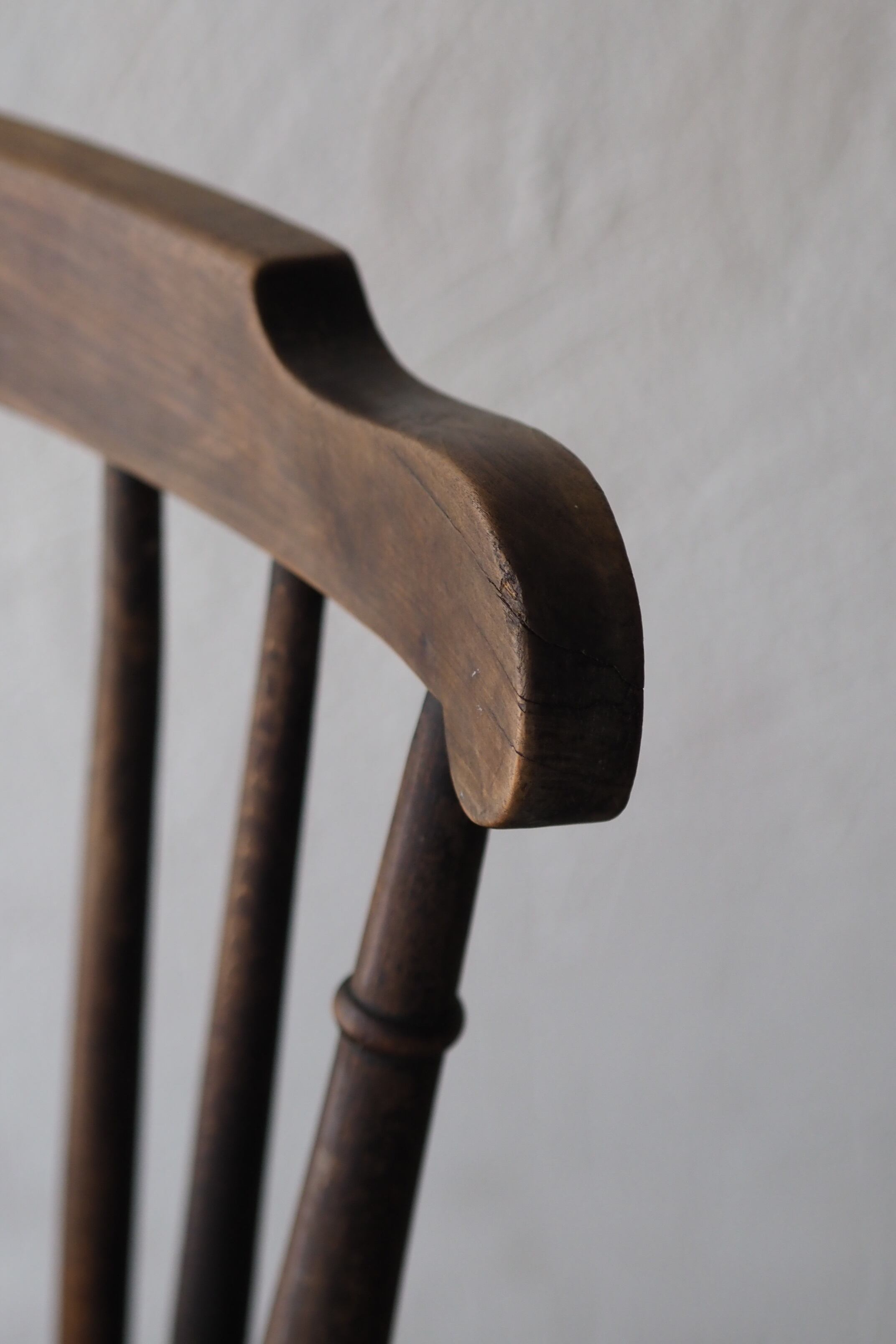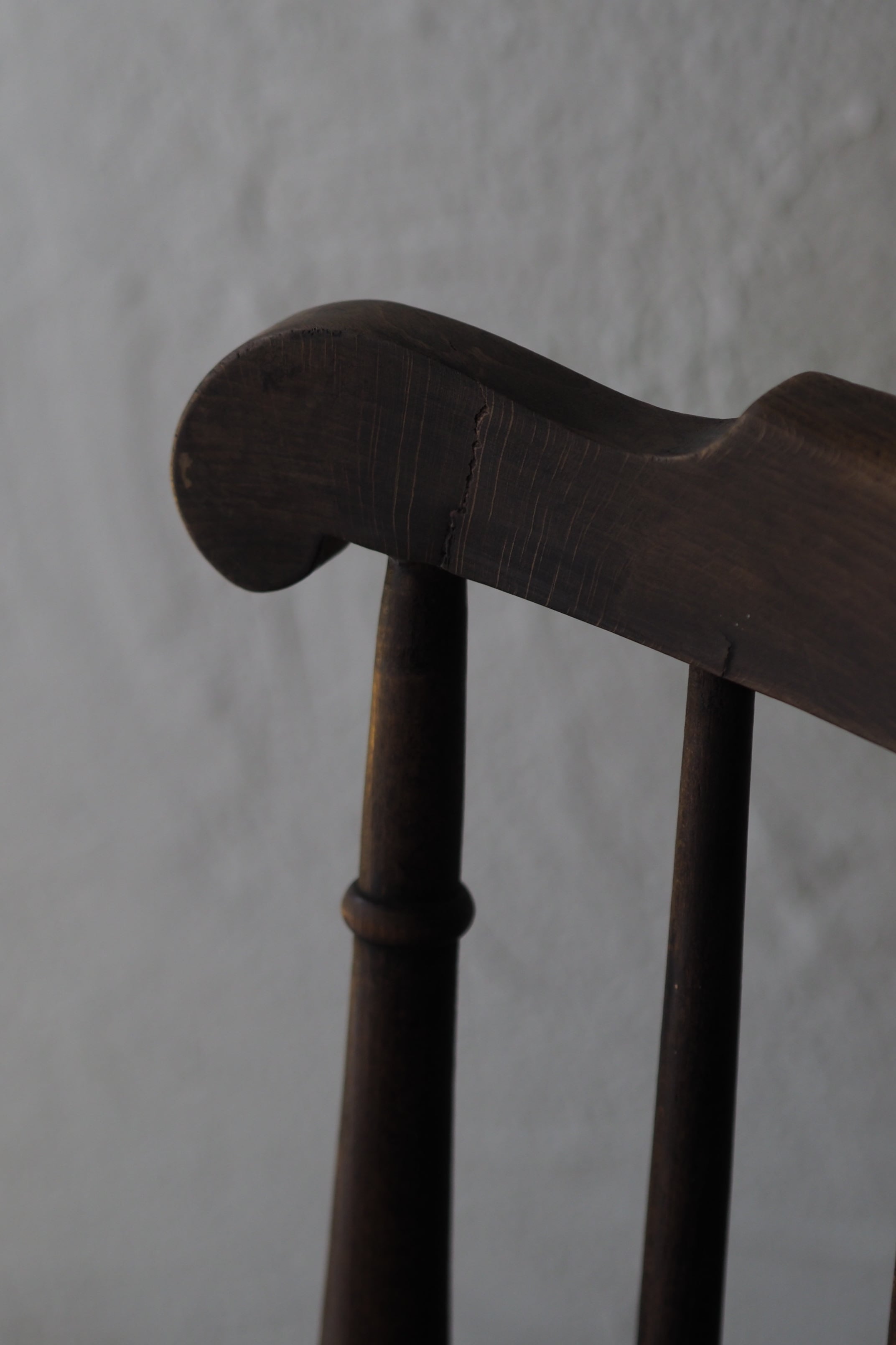 壁を背面にしてどこか愛嬌のある形でもあり、細長い背棒がすっきりとした印象も受ける椅子。