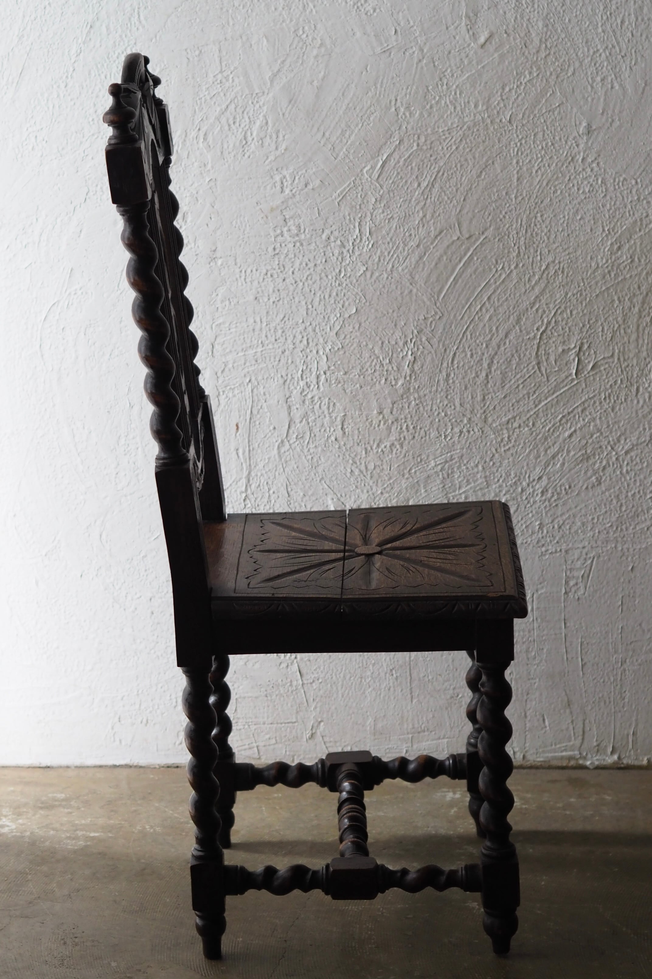 教会の建築を連想させる独特な彫刻を特色としておりこの1脚も例外ではなく。