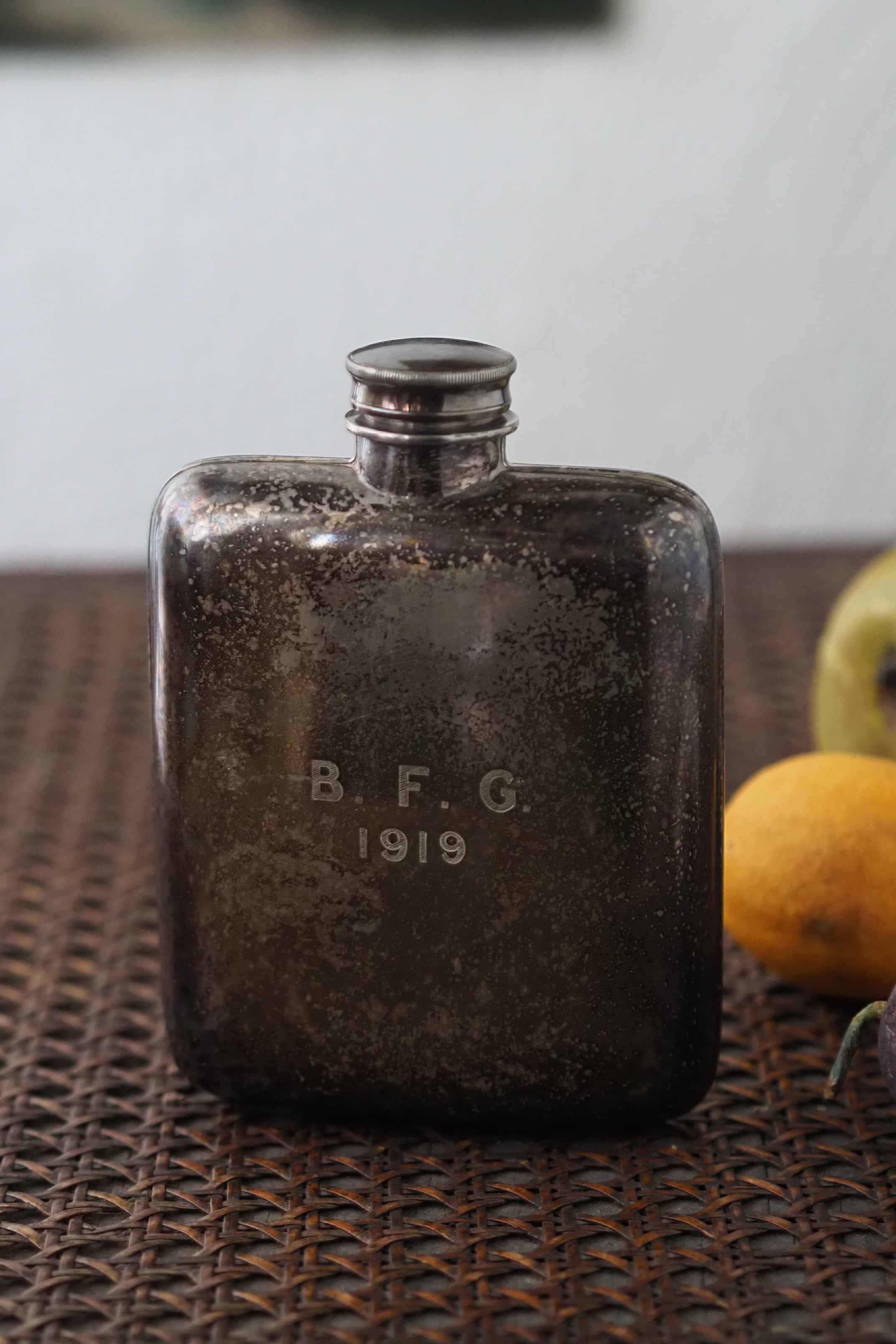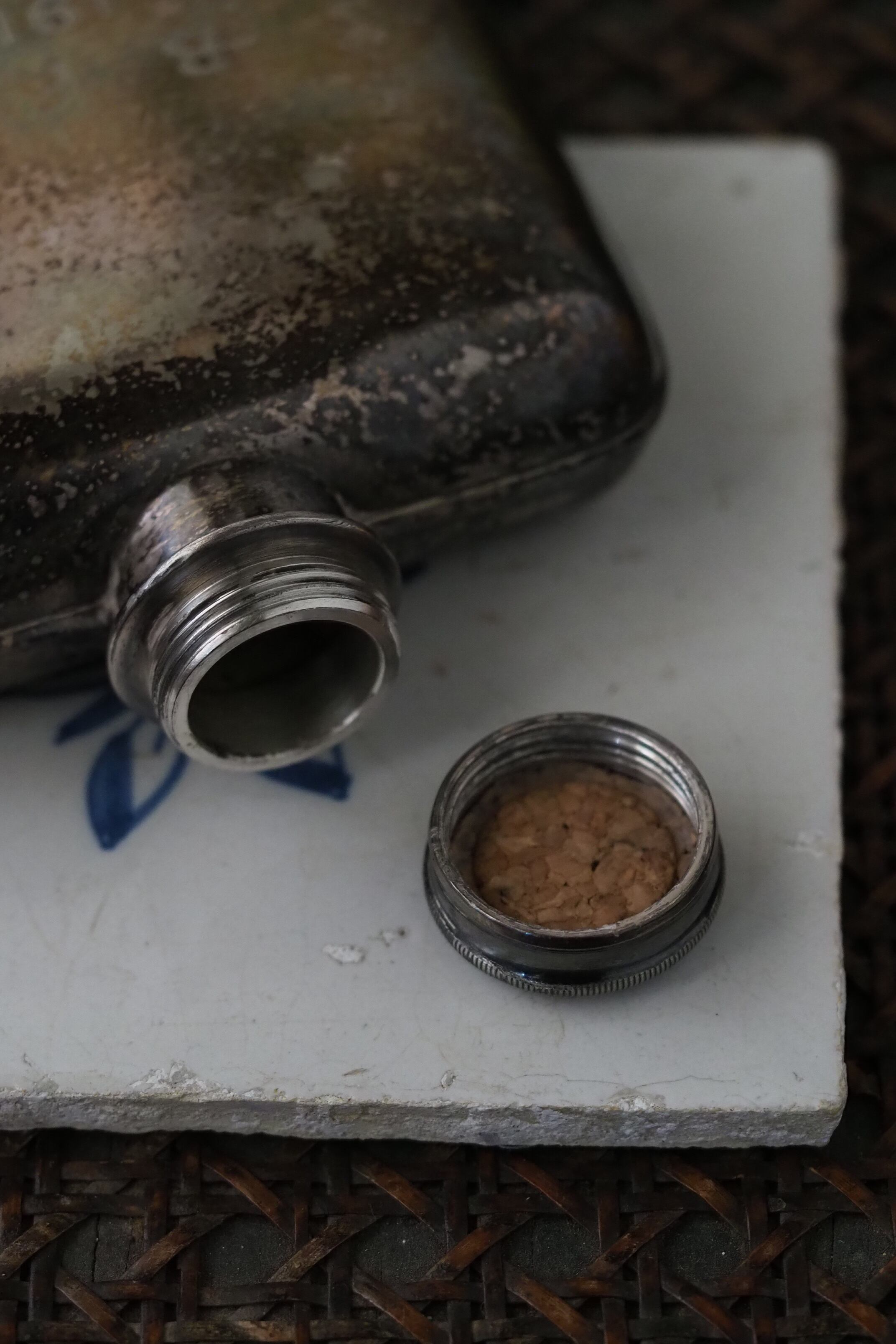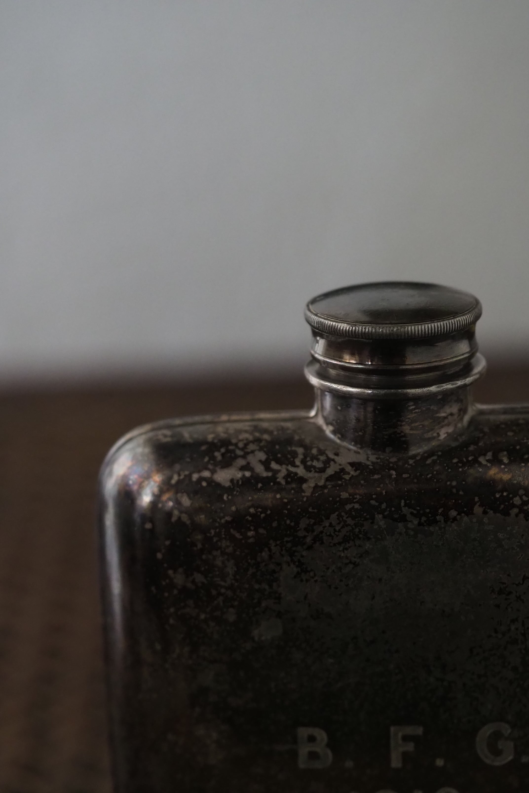 底面にEP=Electro platedの刻印、銀メッキを施したスキットル。