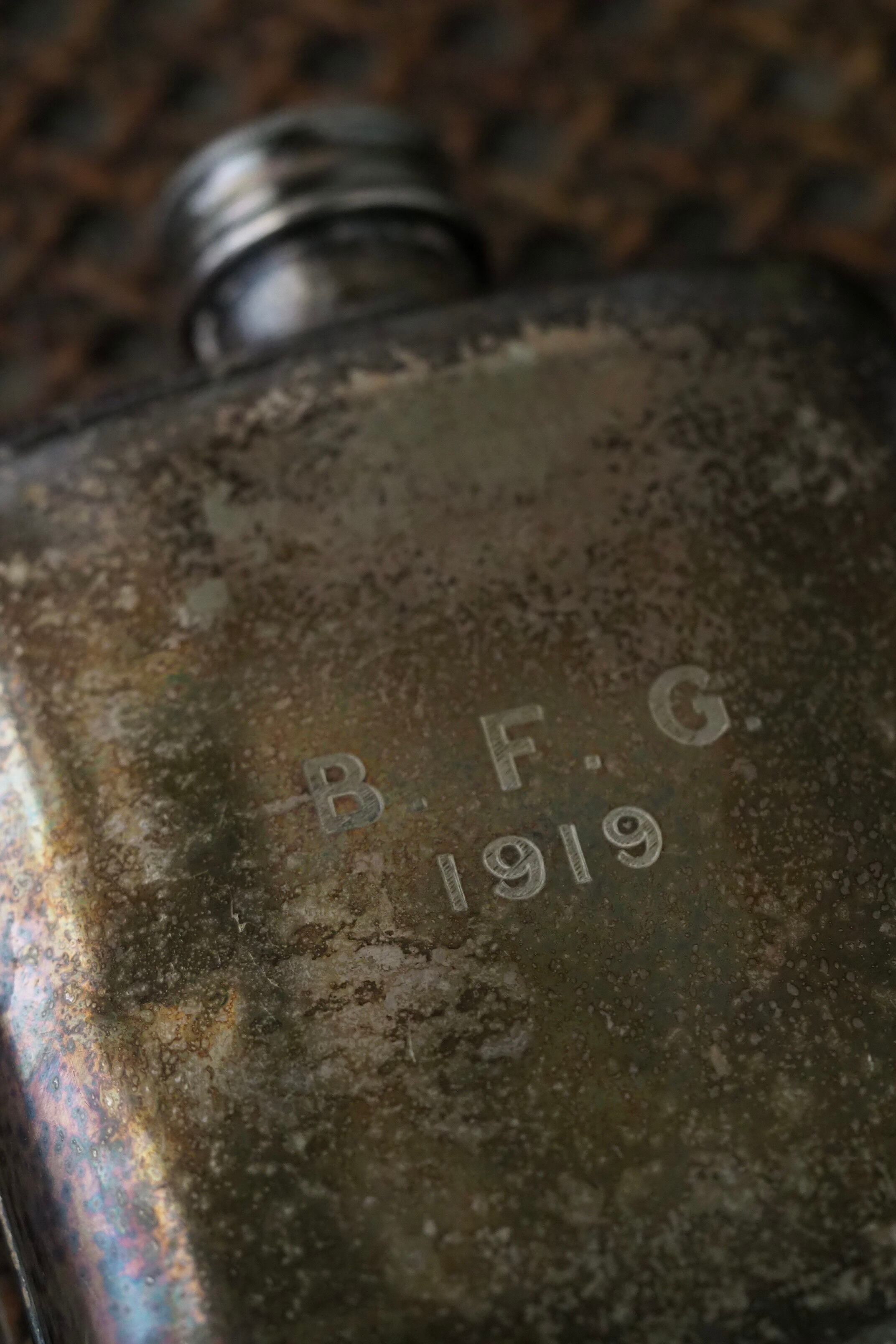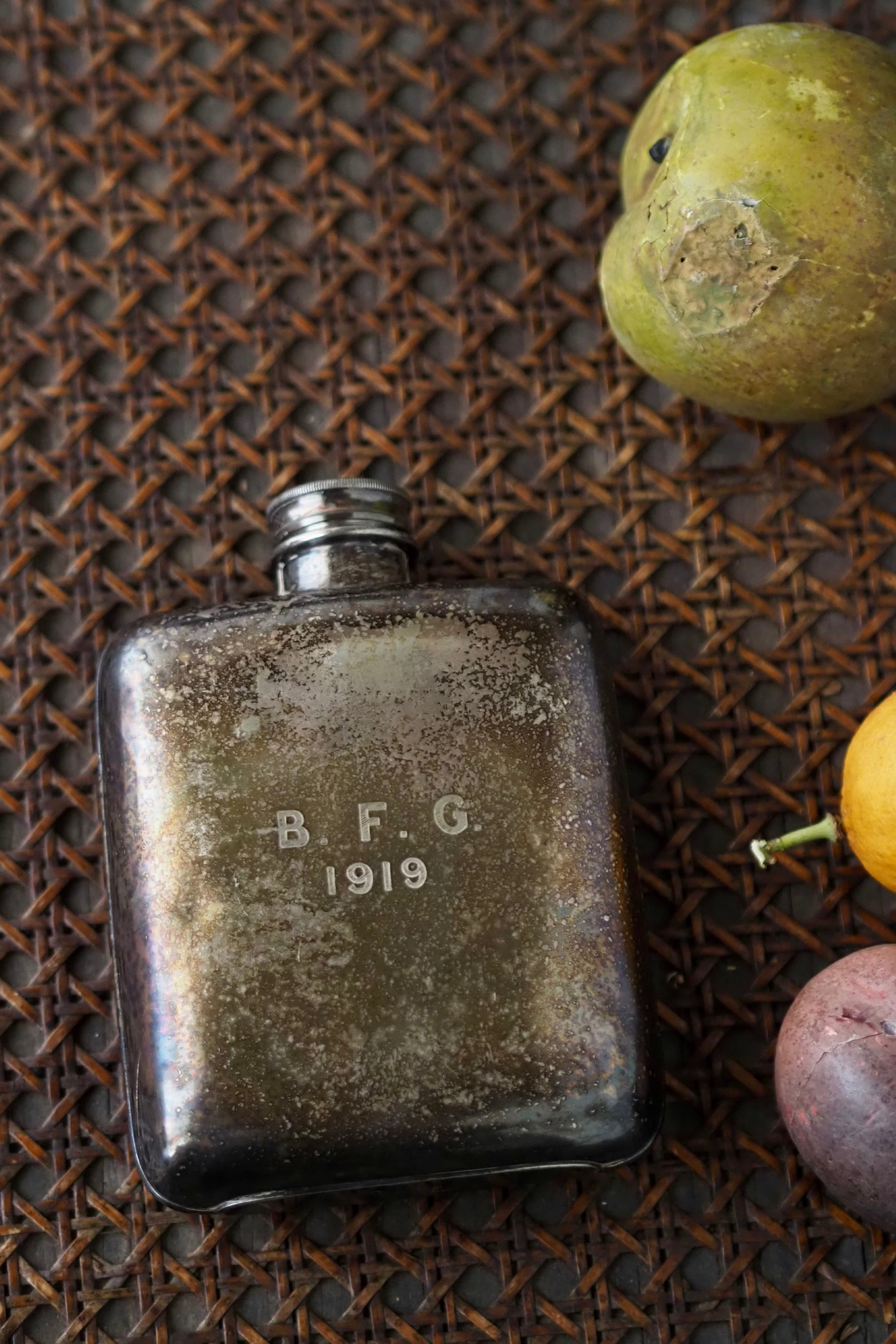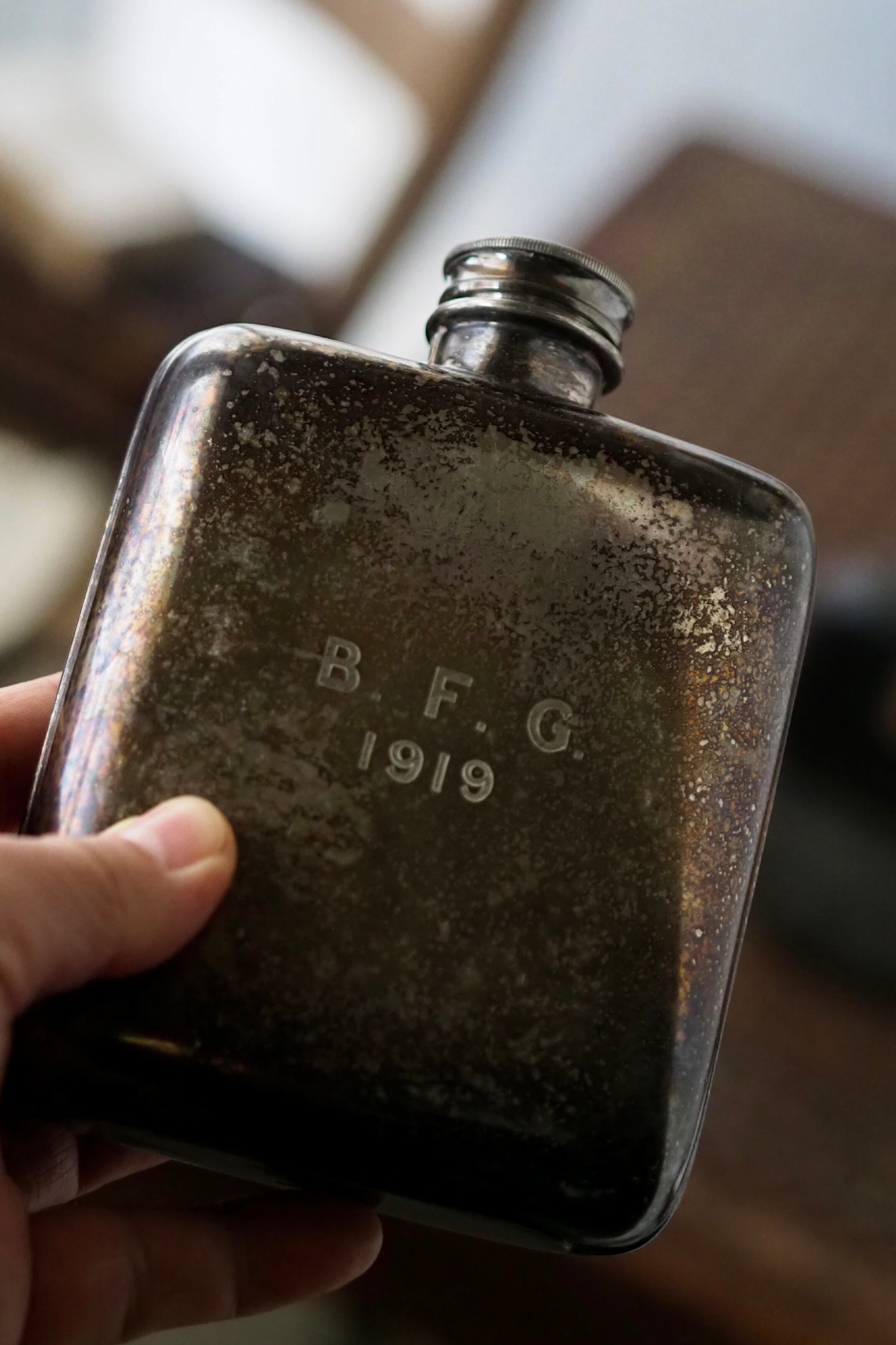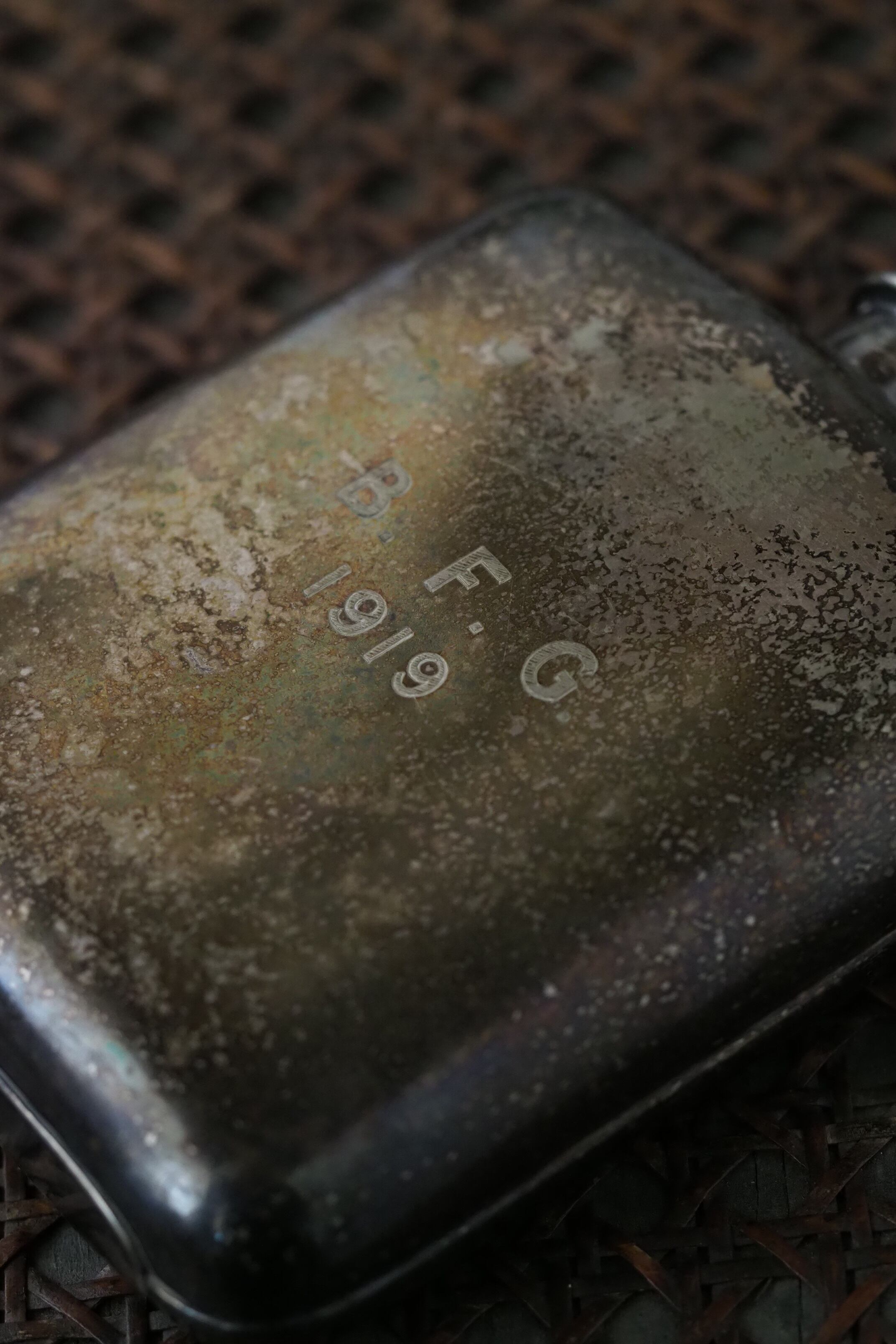底面にEP=Electro platedの刻印、銀メッキを施したスキットル。