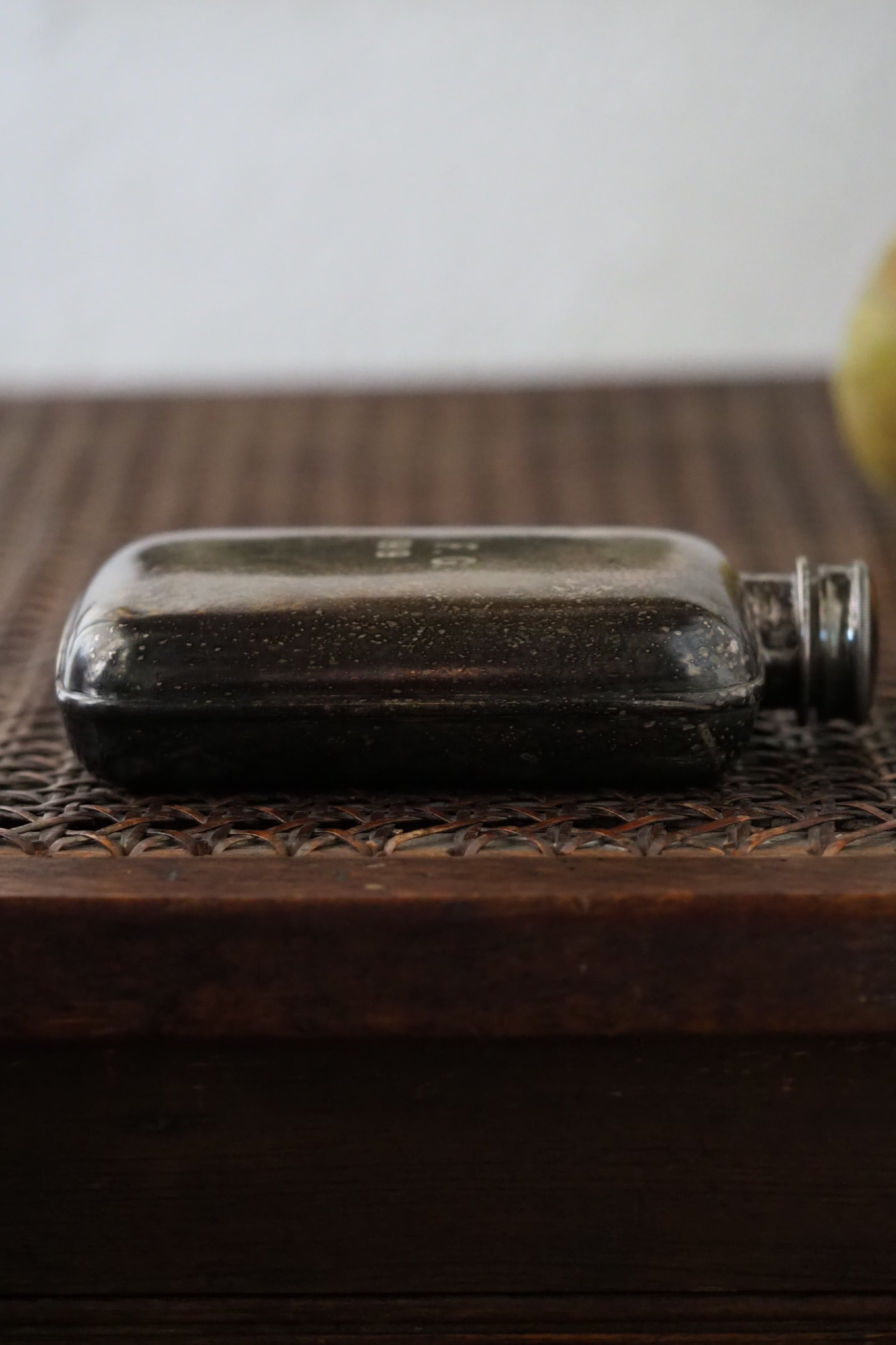 底面が平ら、自立するヒップフラスコで棚のディスプレイにトーンを合わせた品と共に飾ってみては。