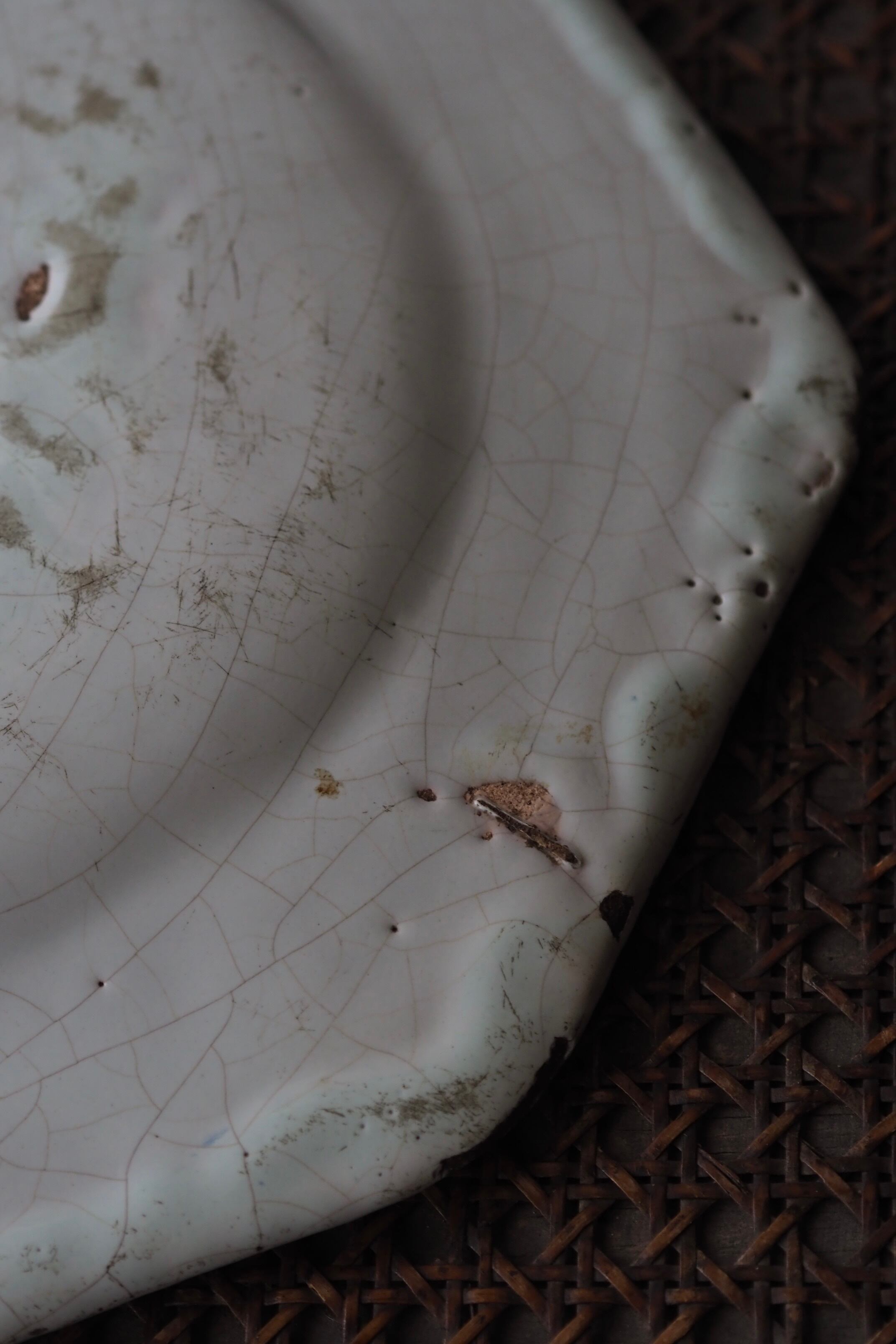 プレートスタンドに飾って普段はパターンを楽しみ、時にメイン料理を喜ばしく盛るのが良いかもしれない(底面のかすがい継ぎによりカタカタします)。