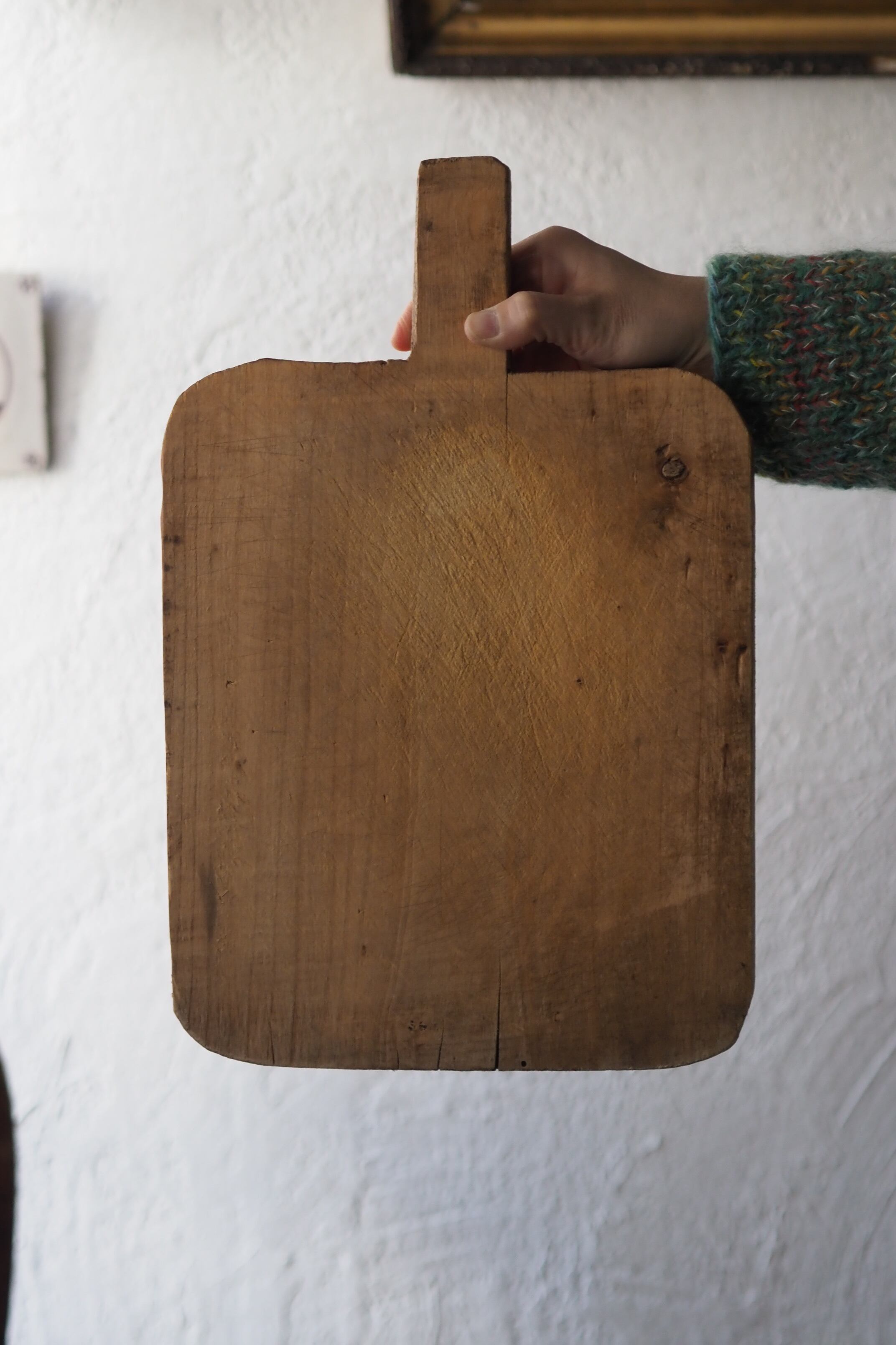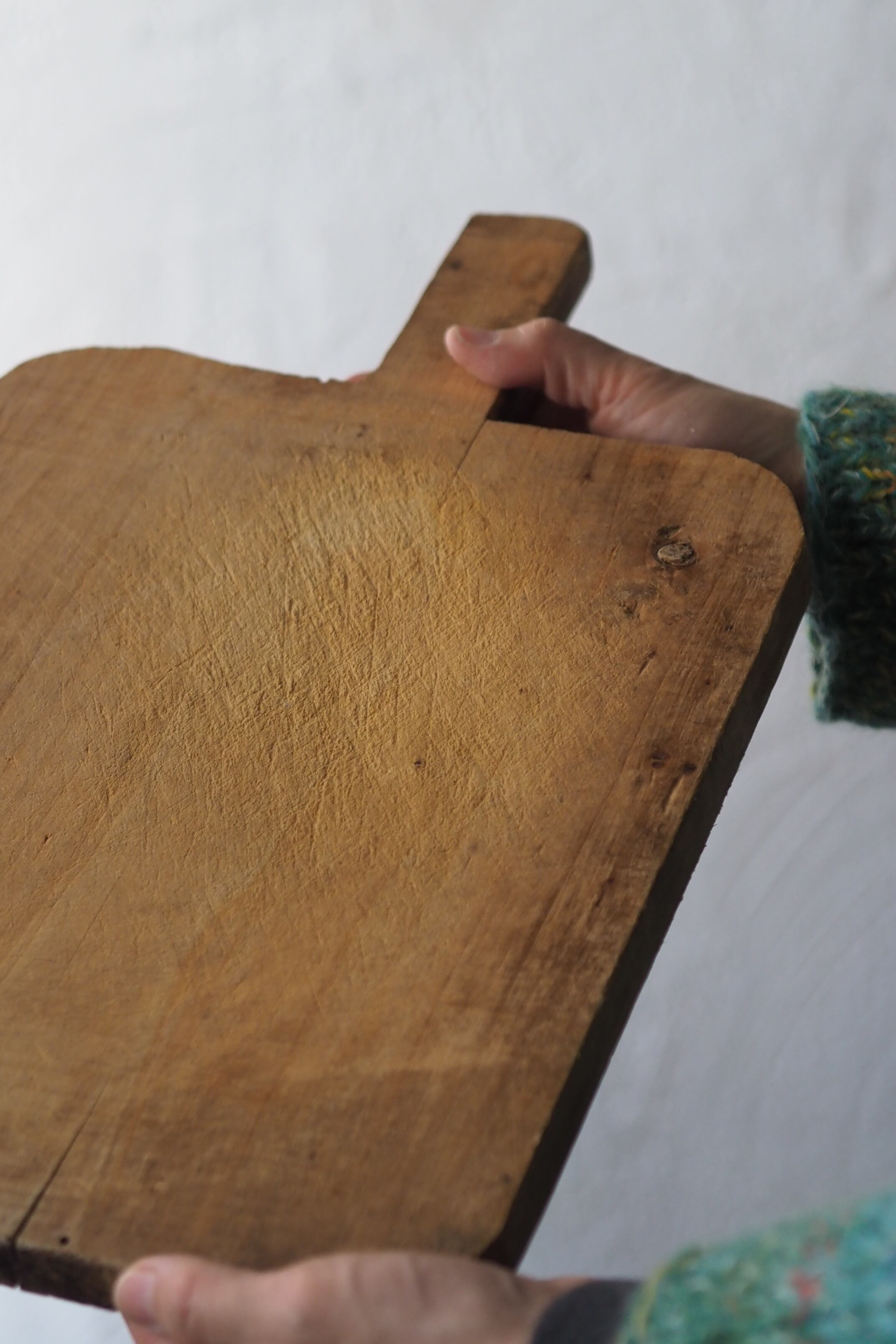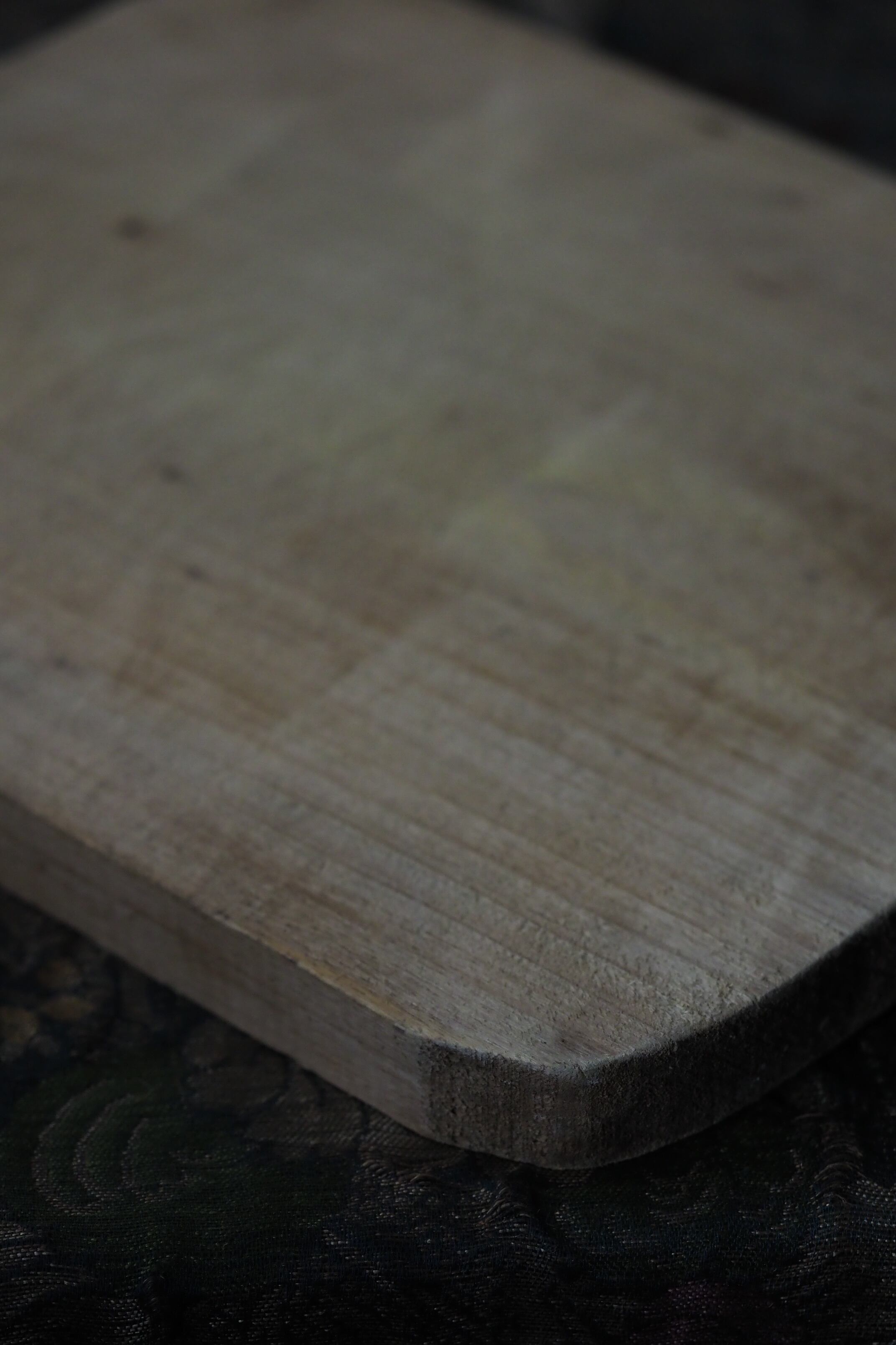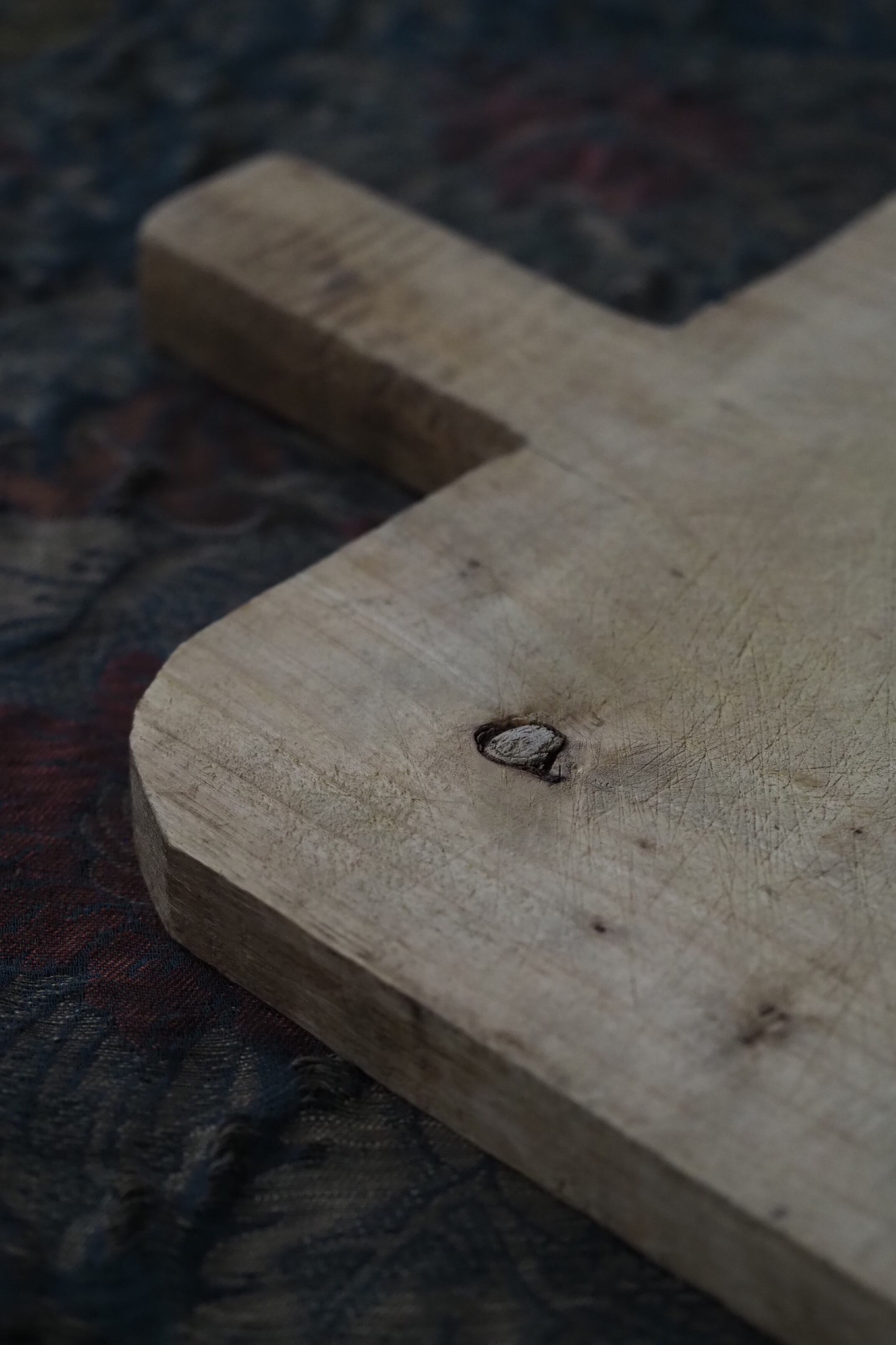 乾いた質感のカッティングボード、それもそのはず、イギリスからのお品で20世紀初頭位のまな板ですが近年表面割と綺麗に削り手入れされた様。