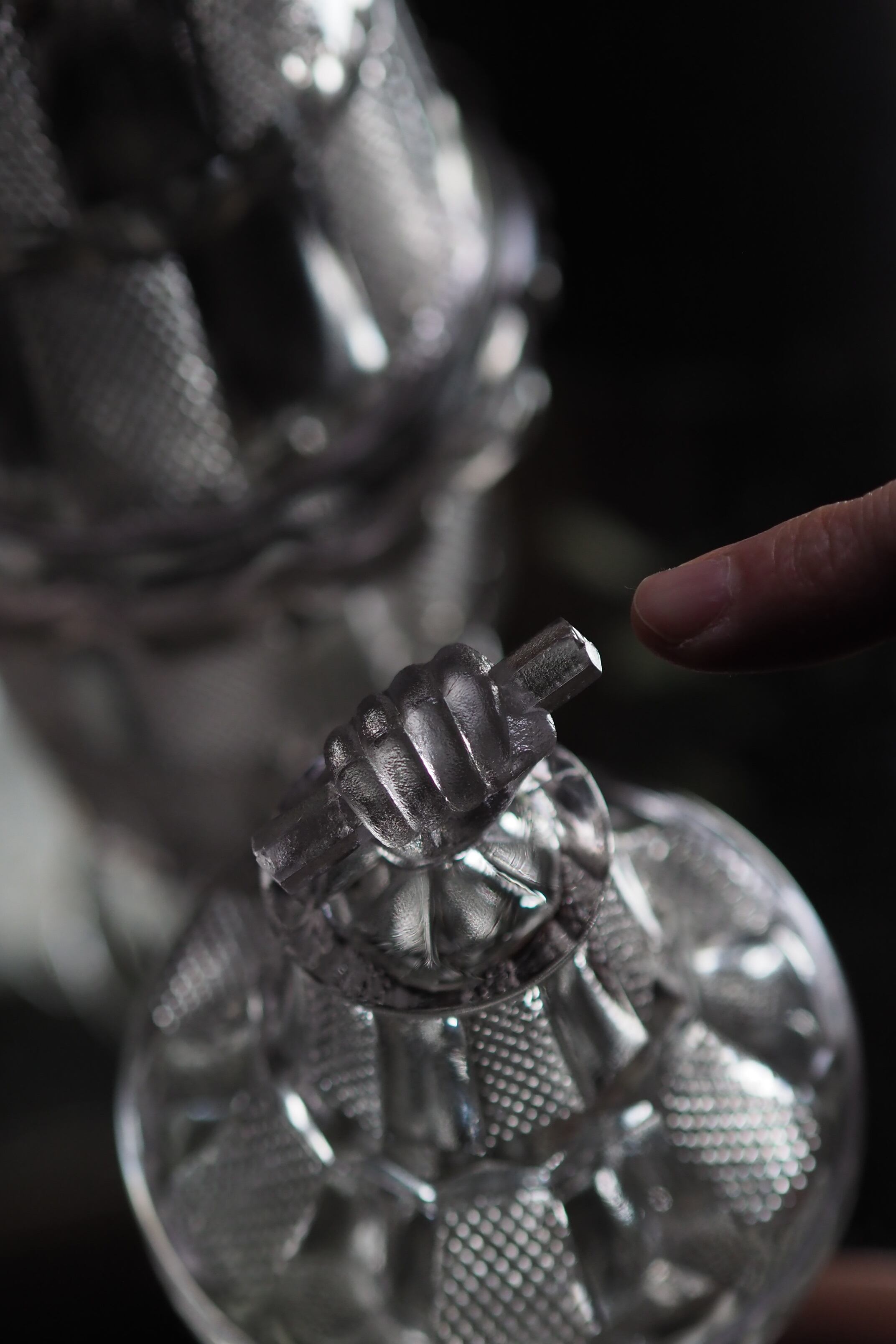 19世紀末にこのガラス製品を製造したアメリカ ピッツバーグのオハラ・ガラス社製、独立運動や自由擁護の中心地に因みその名も「ペンシルヴェニア・ハンド」と名付けられている。
