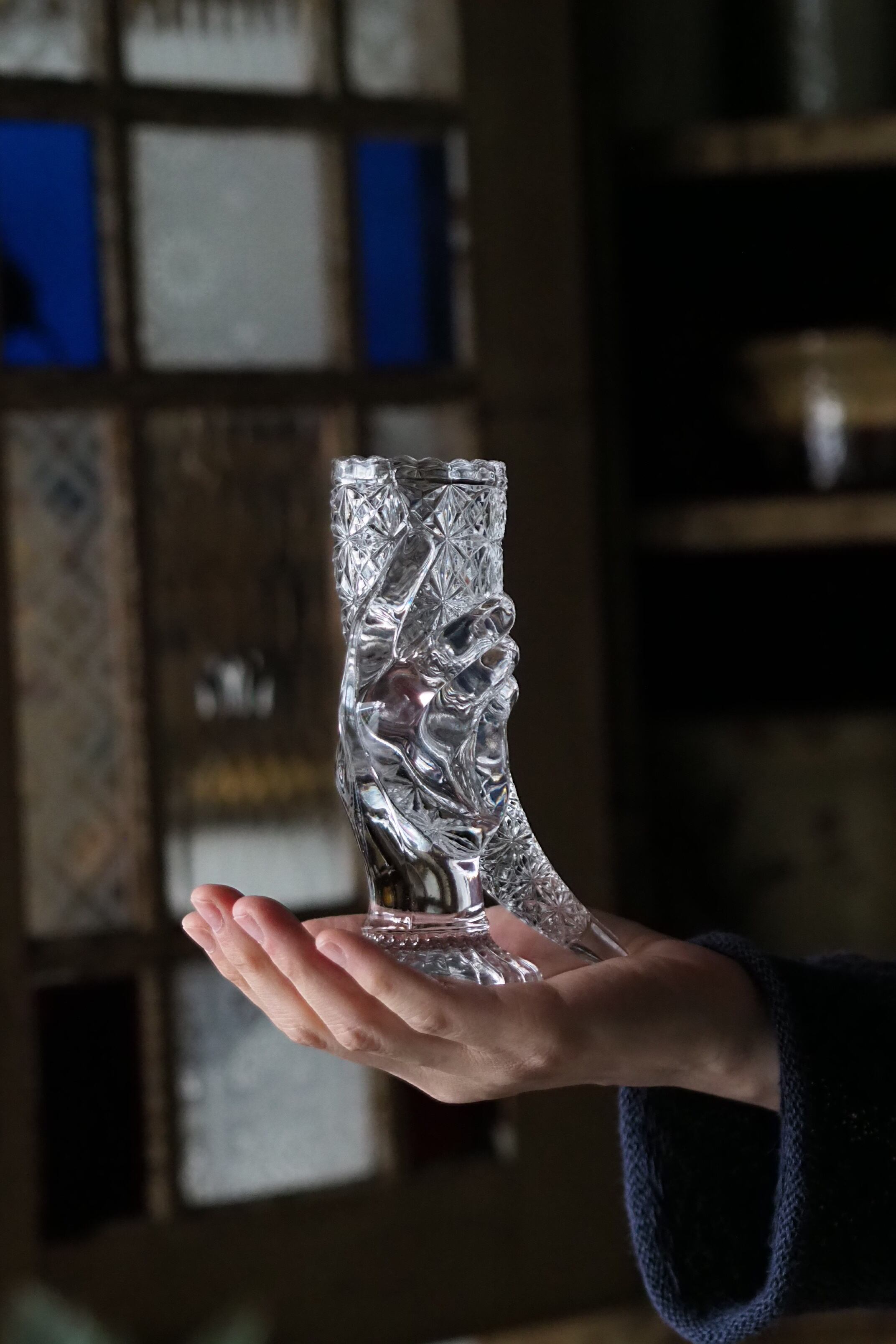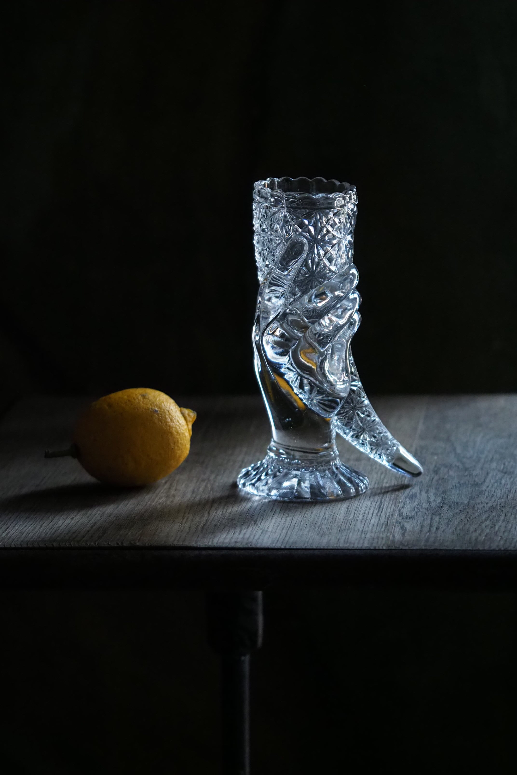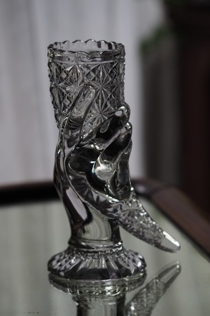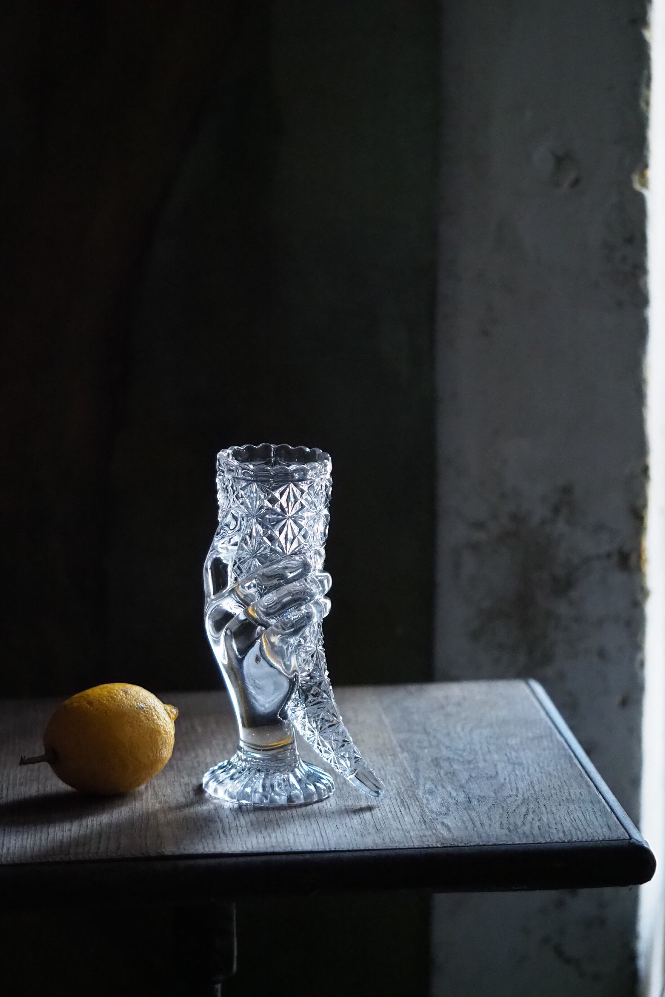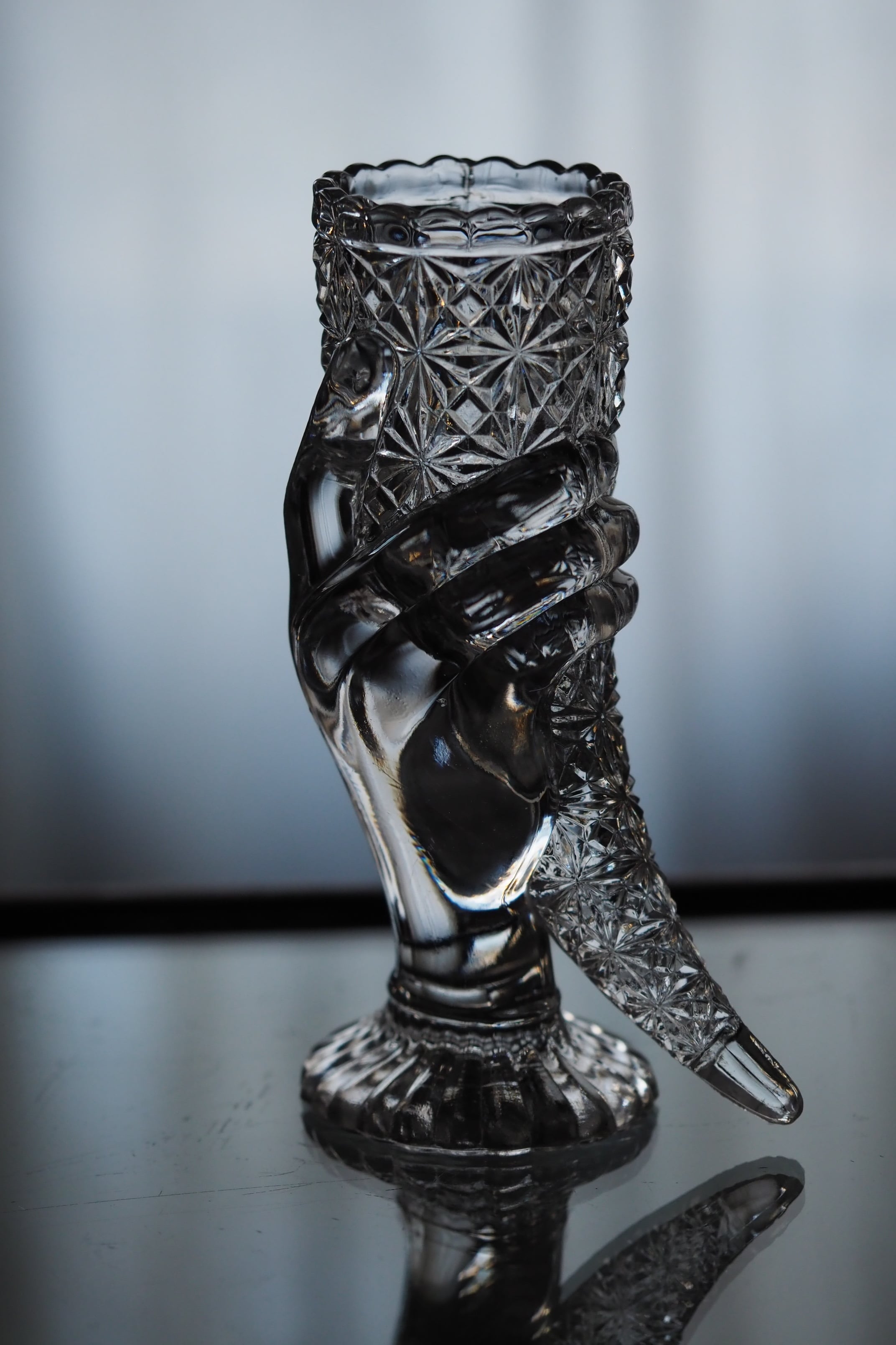 ダイヤ模様カットガラスのコルヌコピア-豊穣の角を握る手。