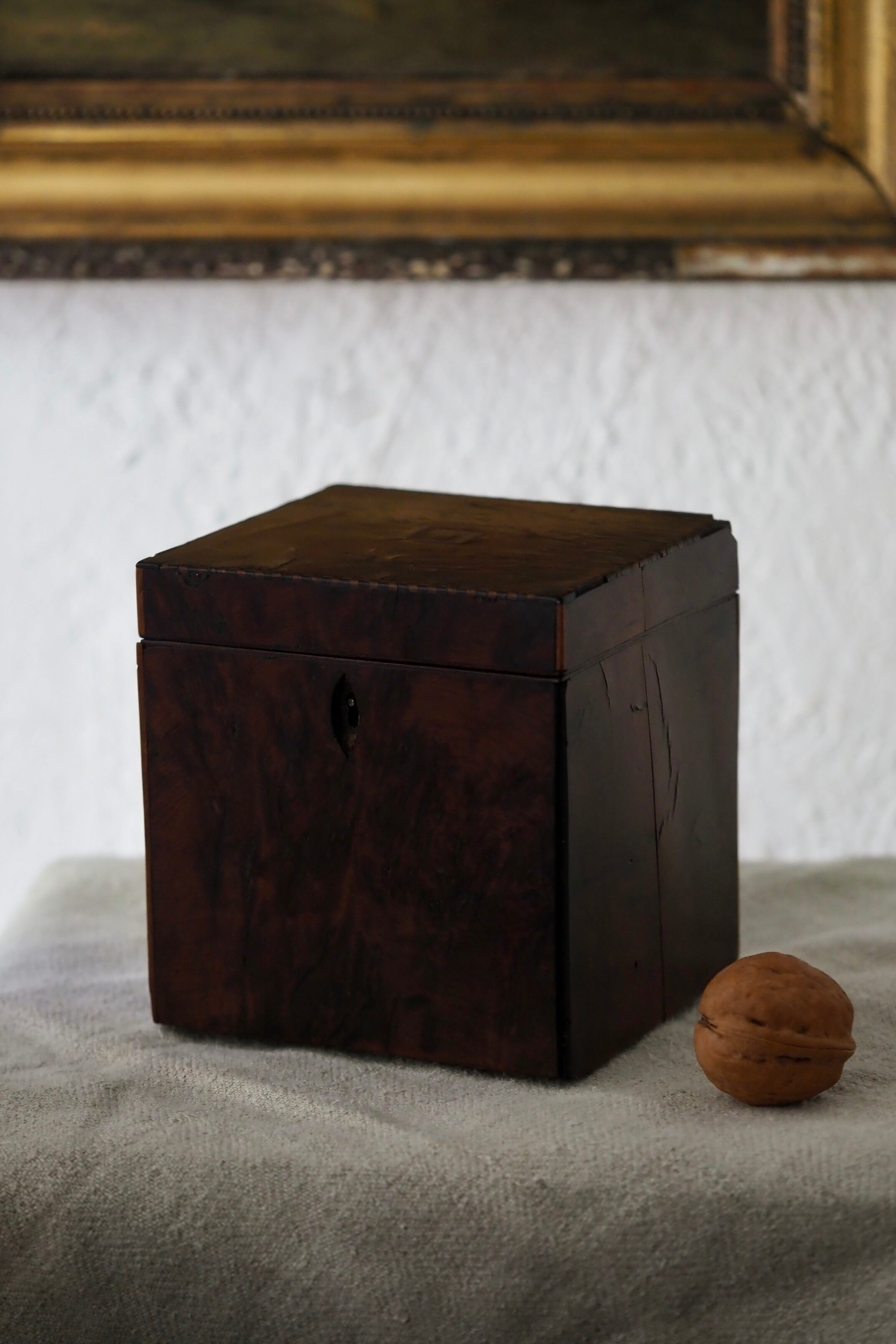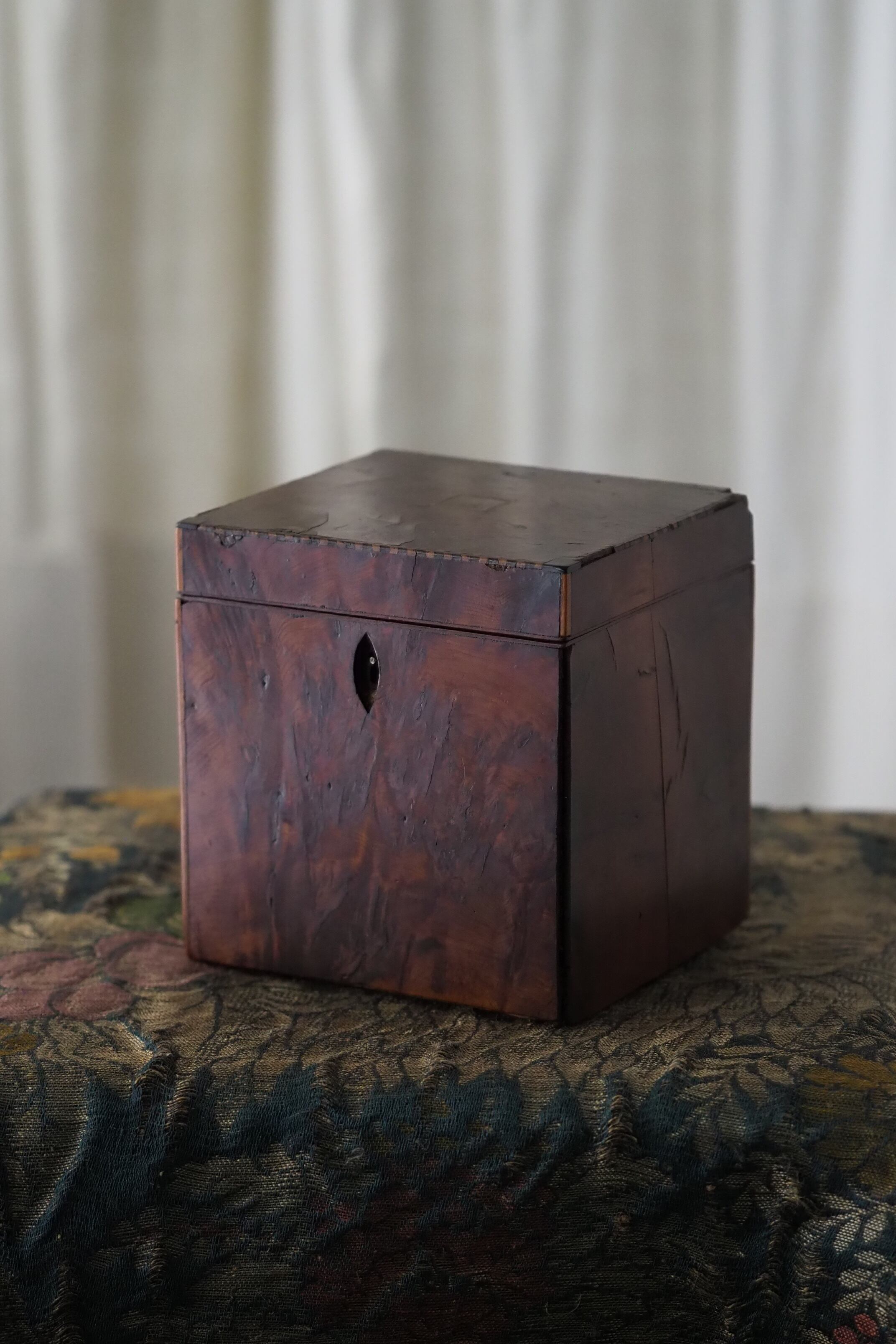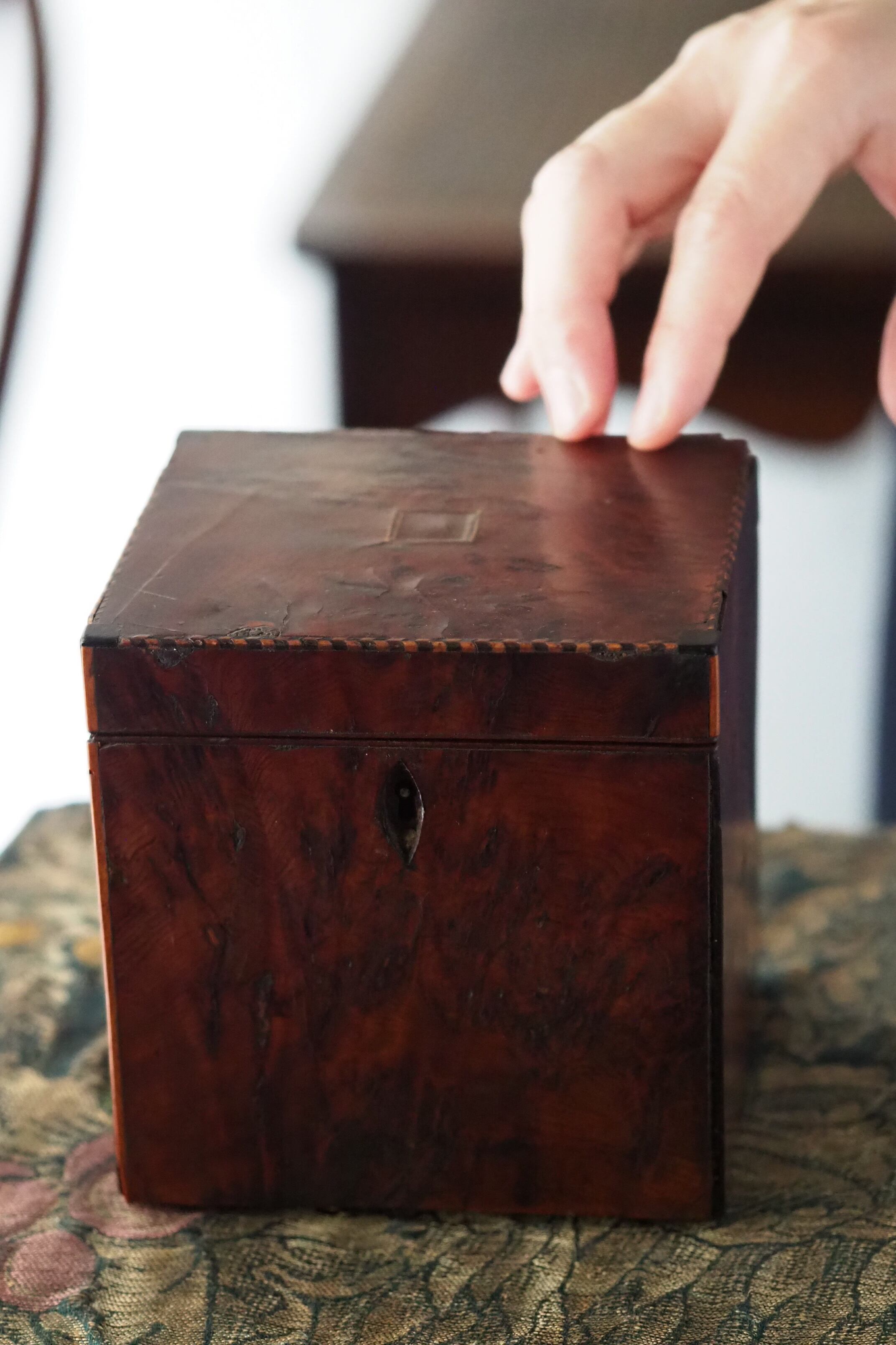 1800年代に遡る木製のティーキャディ(茶筒)。