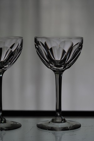 乾杯の音色は実に澄んだ高音、クリスタルのリキュールガラスカップ。