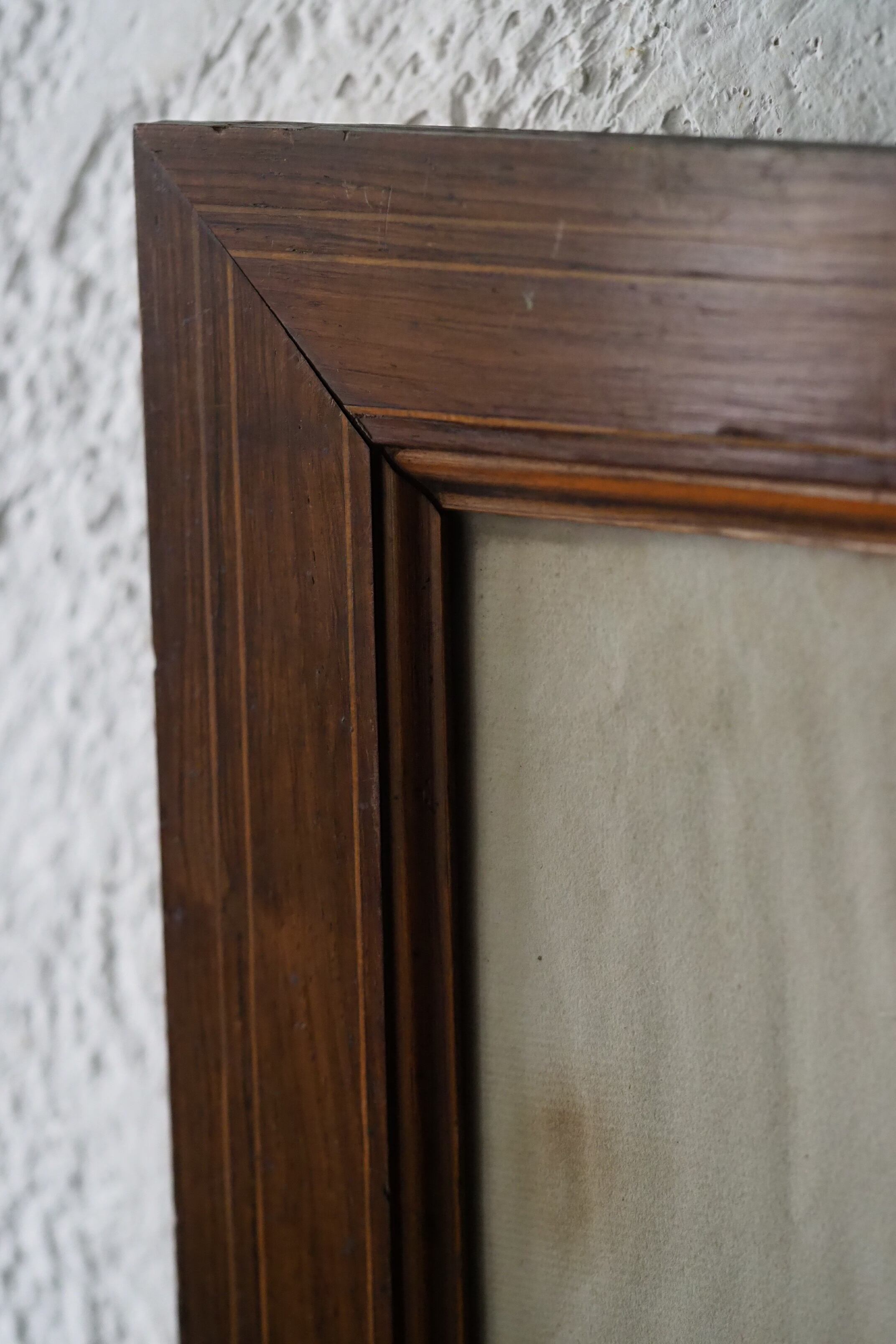 四方に茶色い染み、額縁の右下の縁に少し欠損がございます。