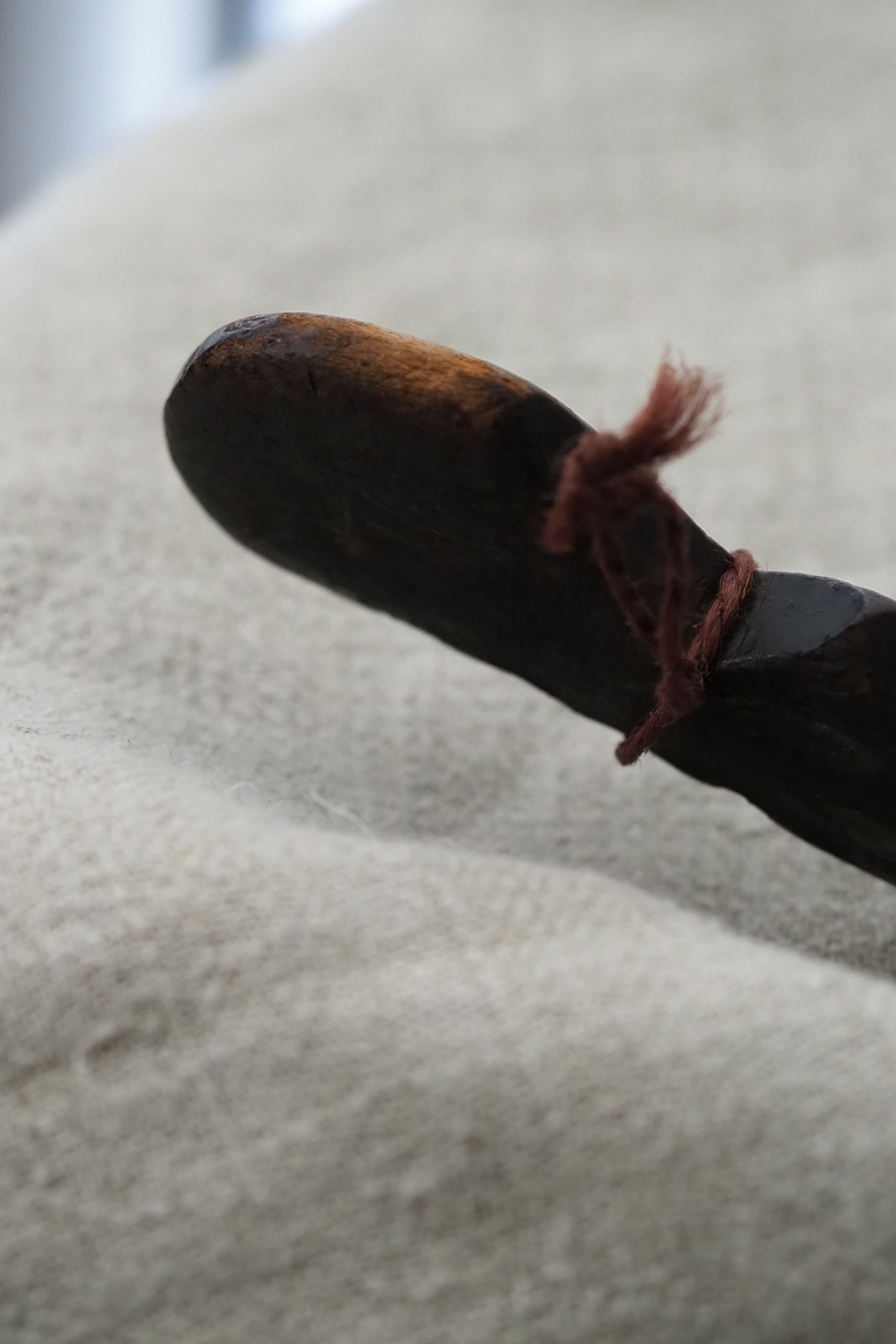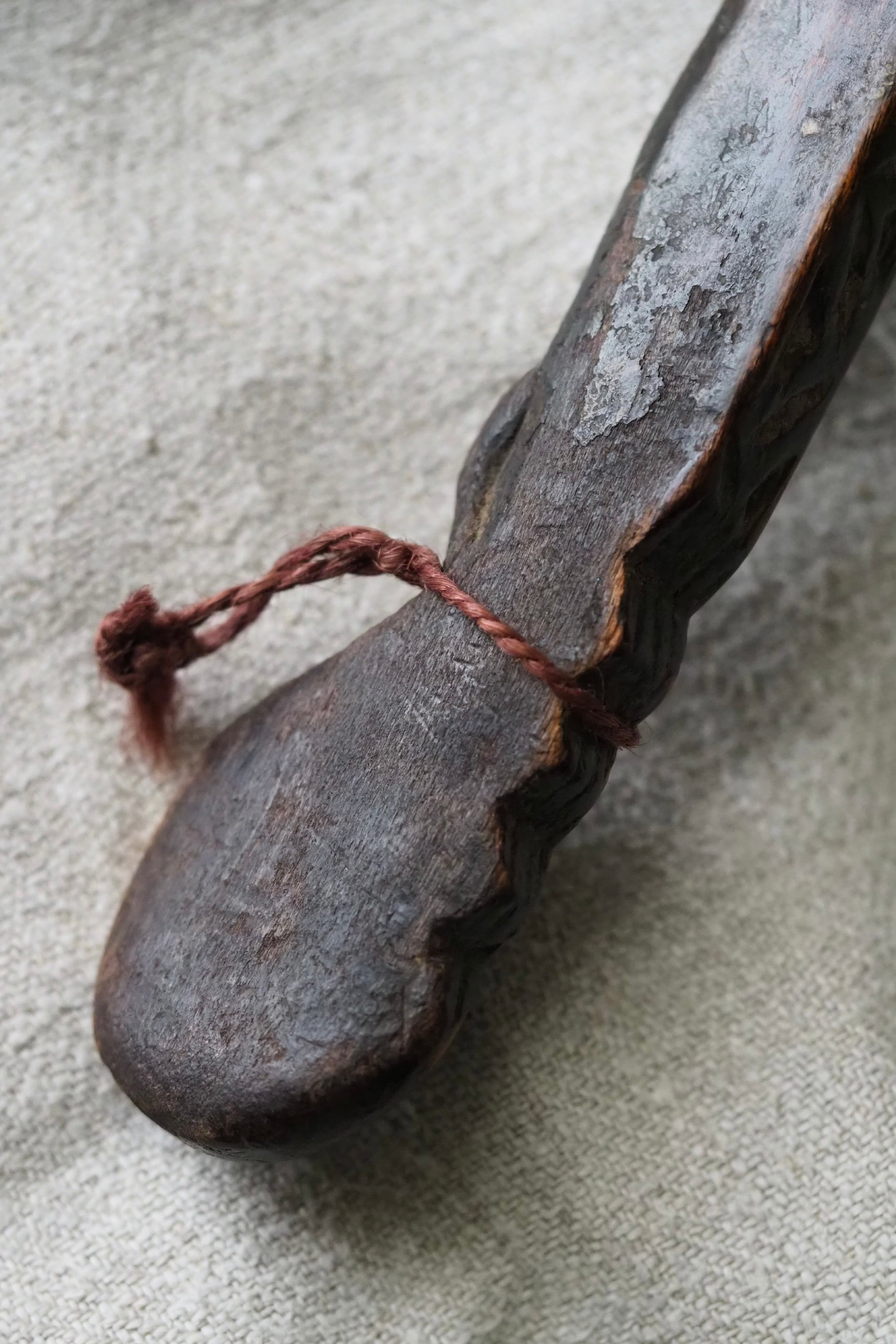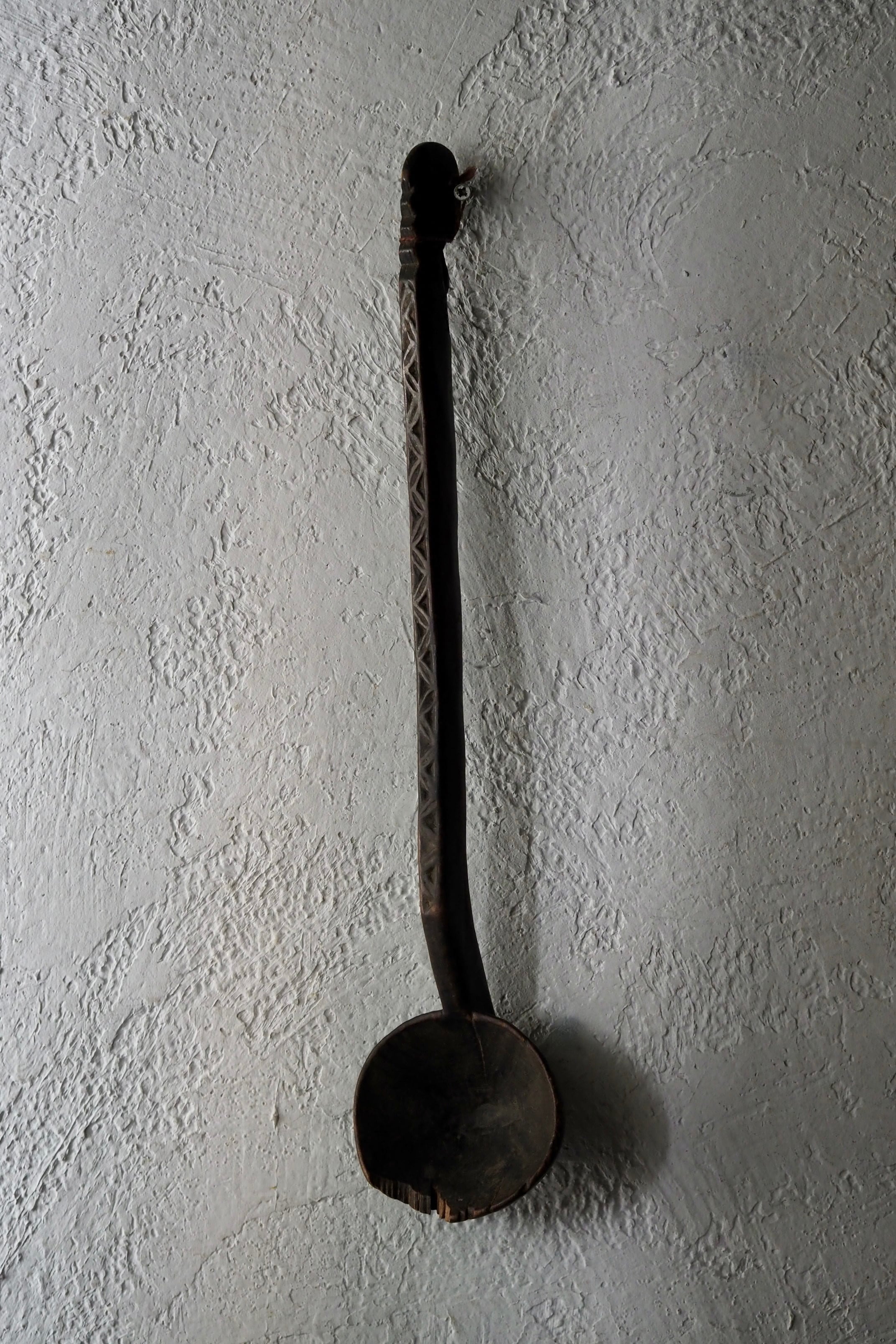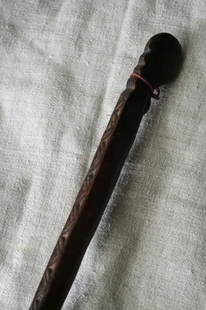 柄にも手仕事の跡が残っている幾何学の木彫。