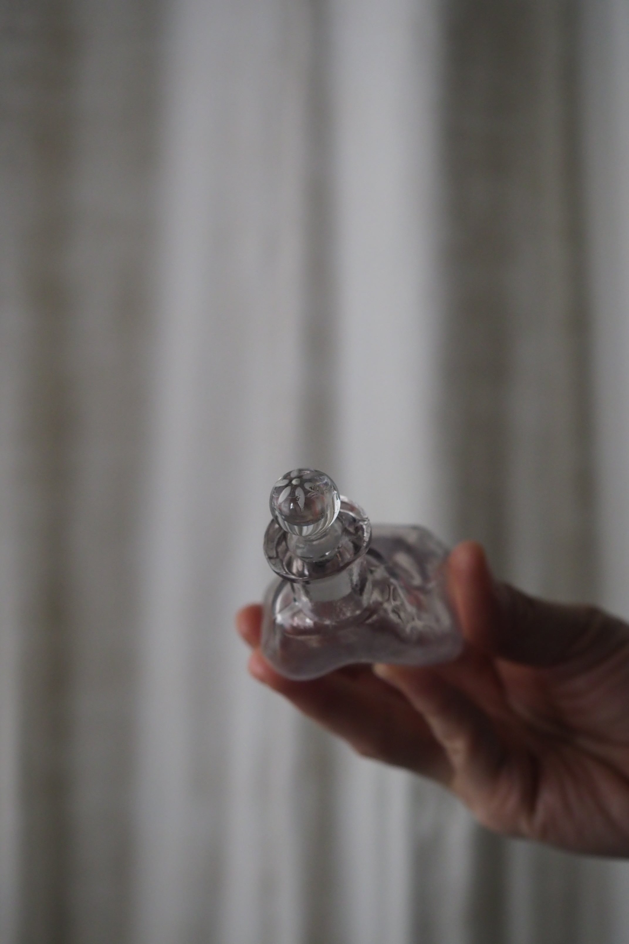 過去香水を入れていたはずでうっすらと白い付着物があり雰囲気深めている。