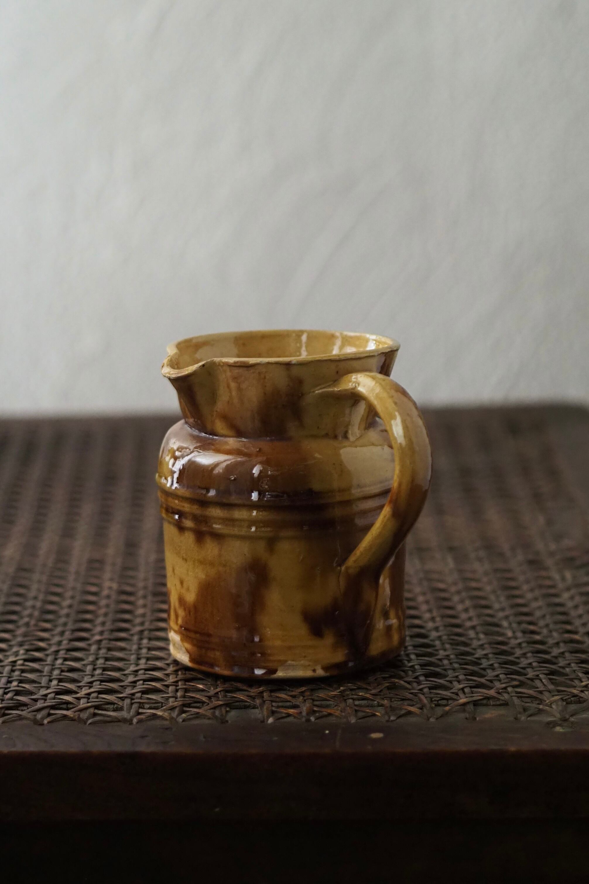 素朴な滲み釉薬、たっぷりとカフェオレのミルクを注ぐのに丁度良いクリーマー。
