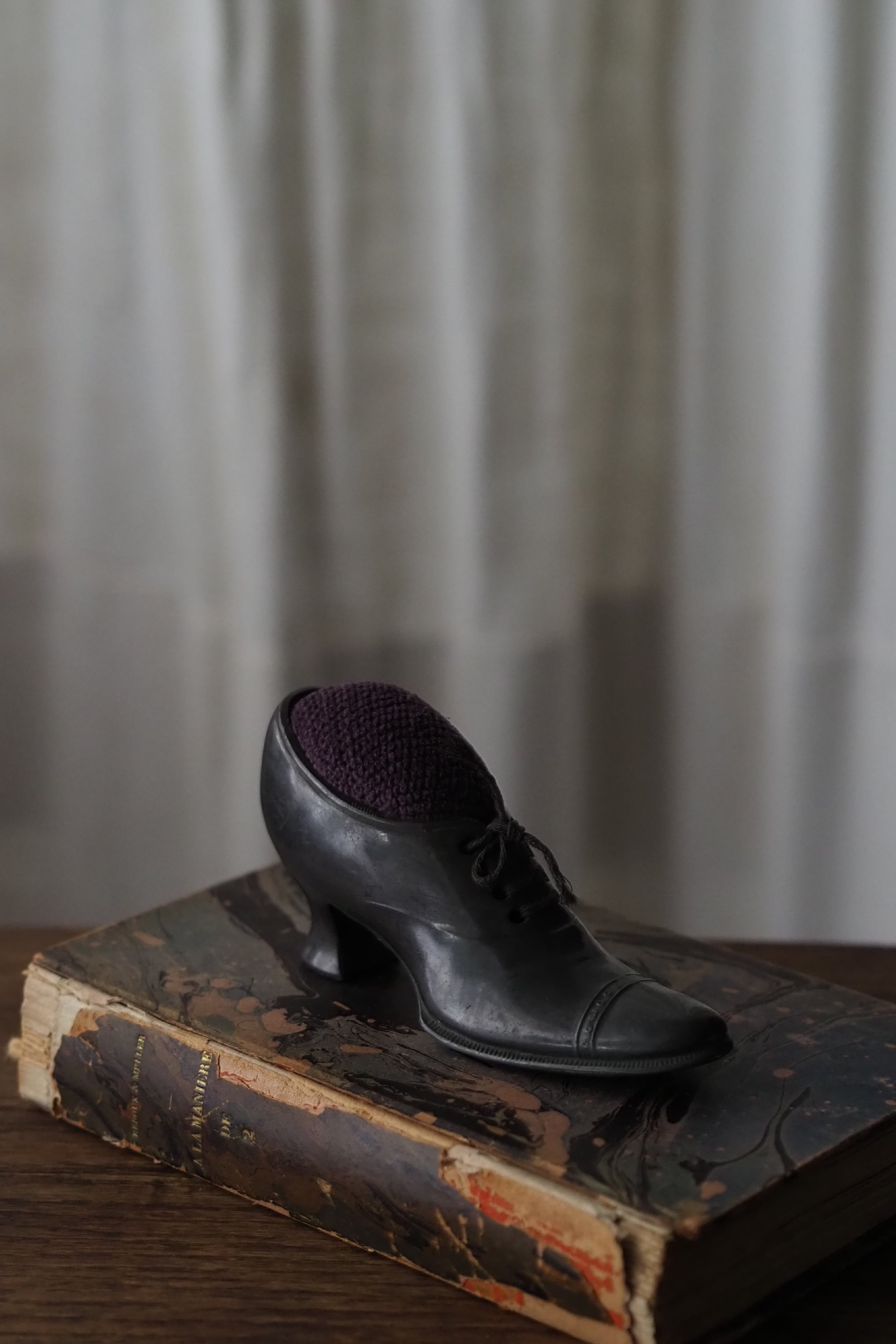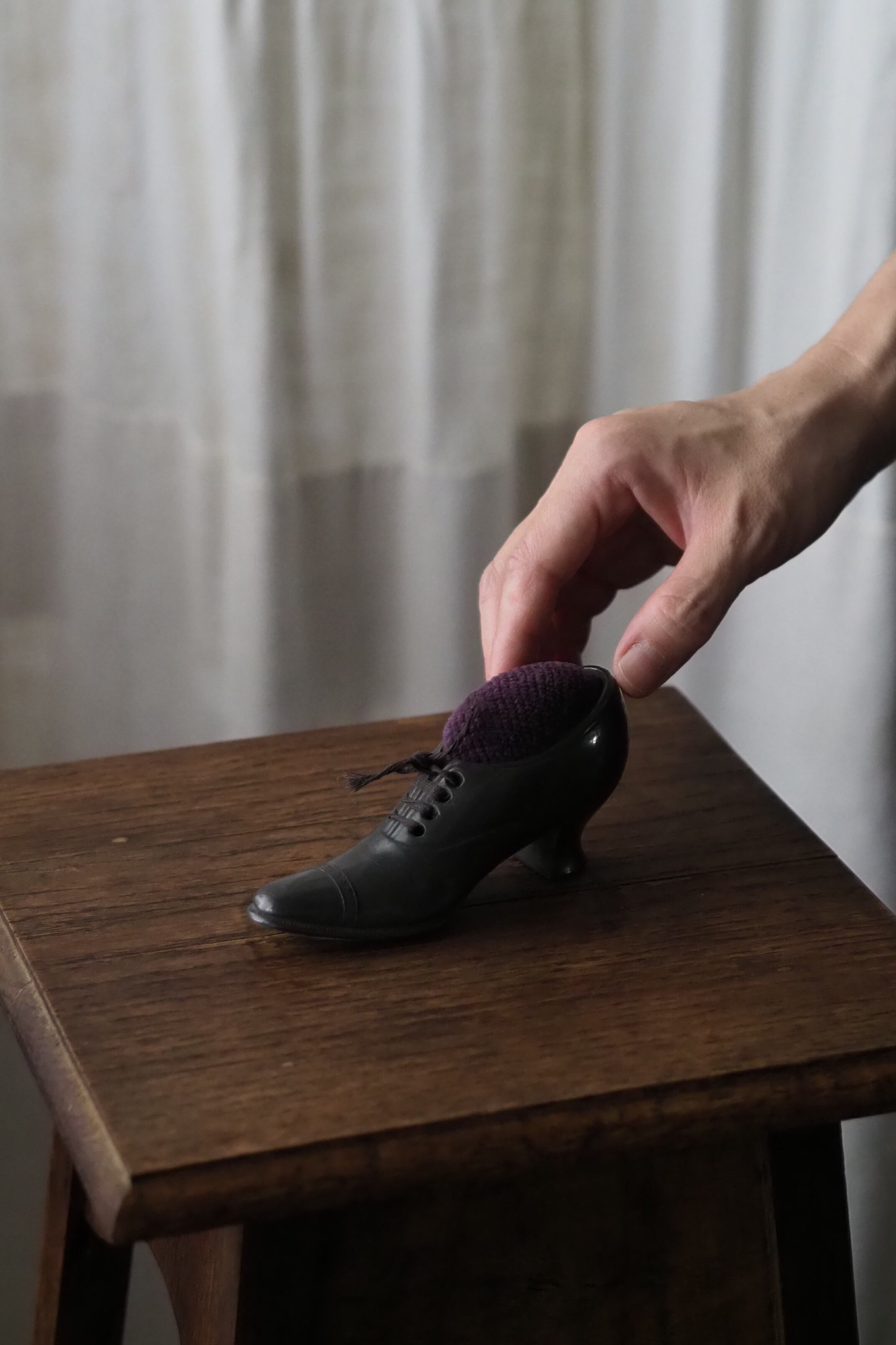 レディライクなレースアップシューズの針山、紐もきちんと結ばれている。