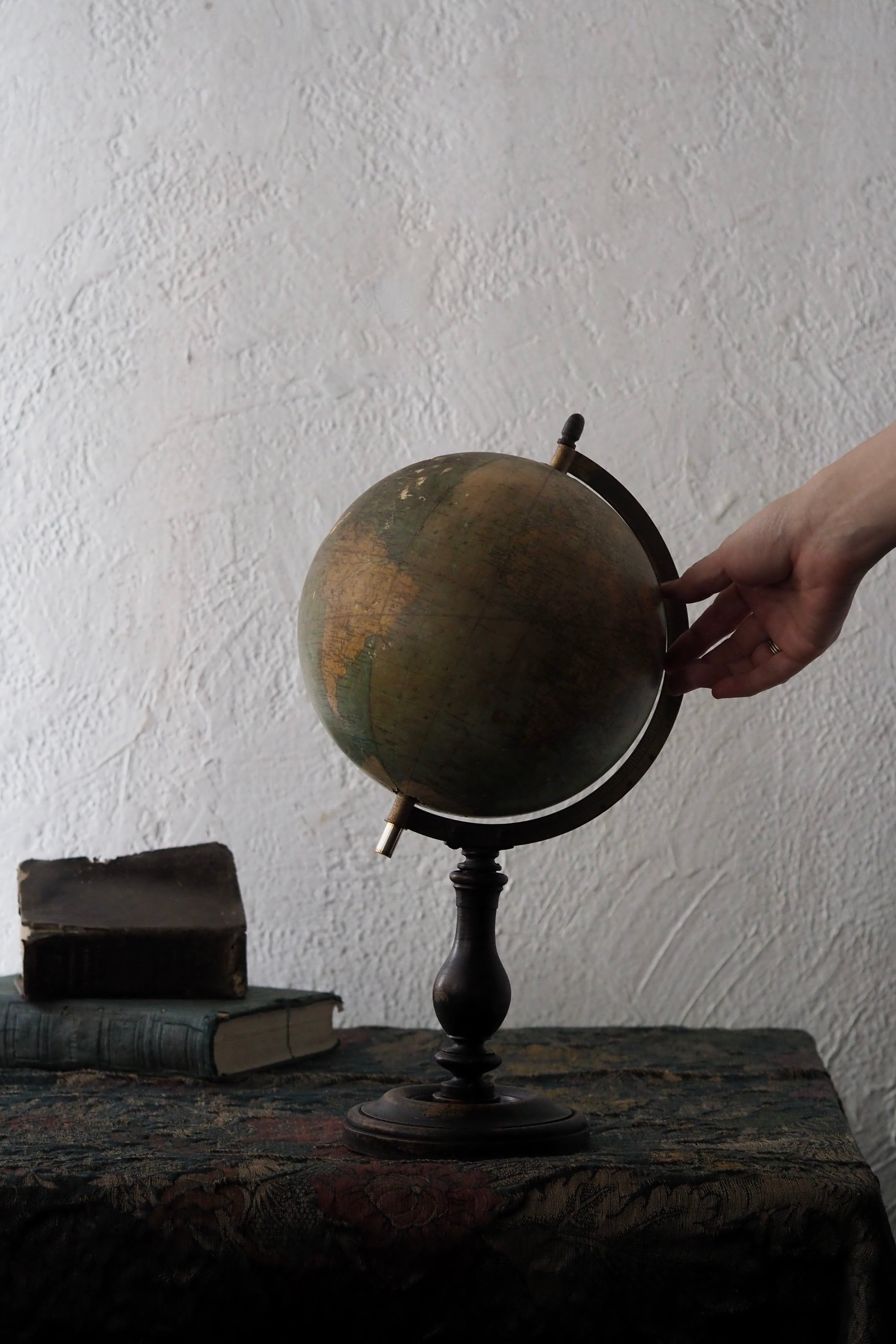 日焼けと経年変化でセピア色に変わった球体をディスプレイするとたちまちにアンティークの叙情的なワンシーンに。