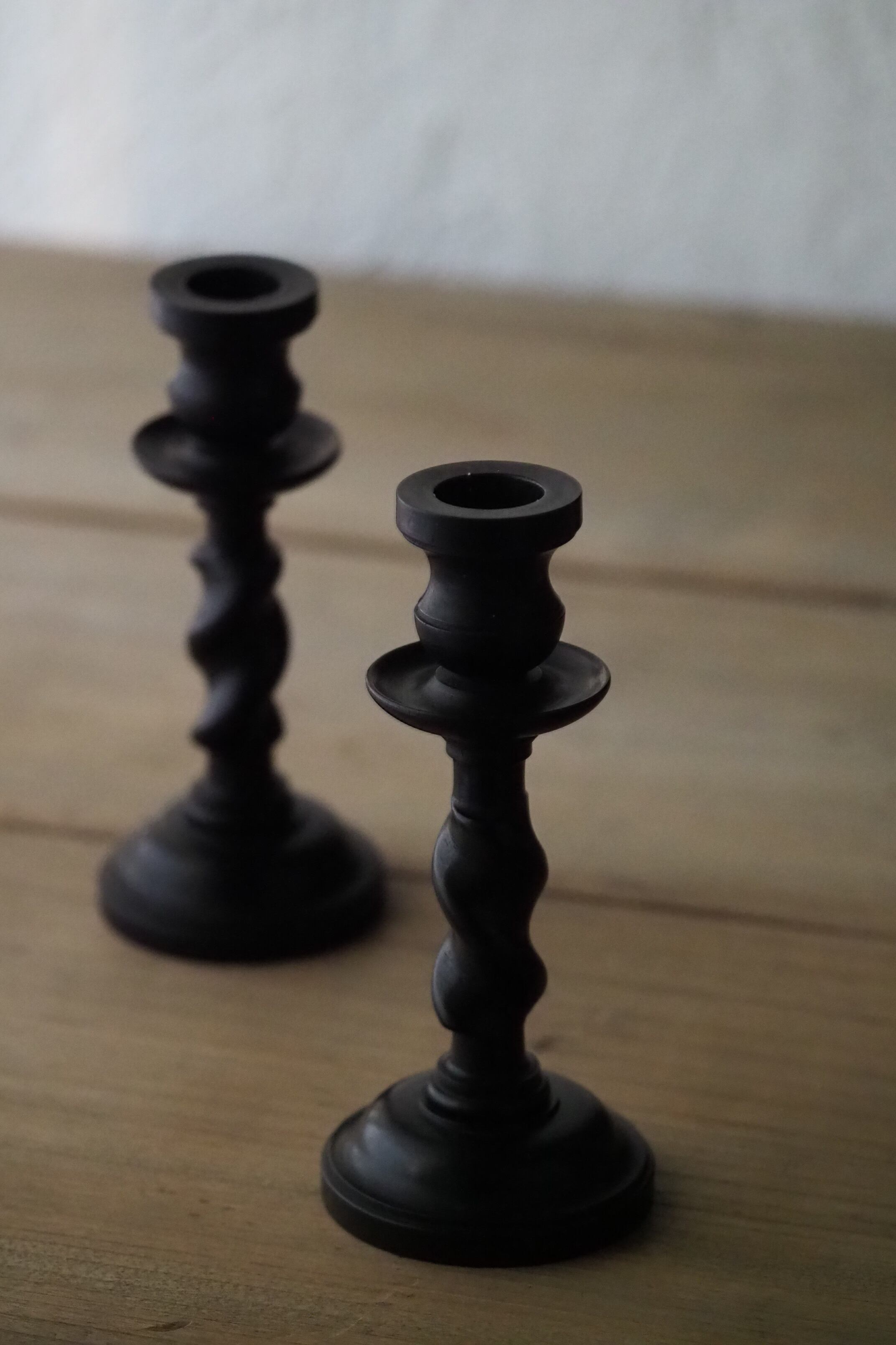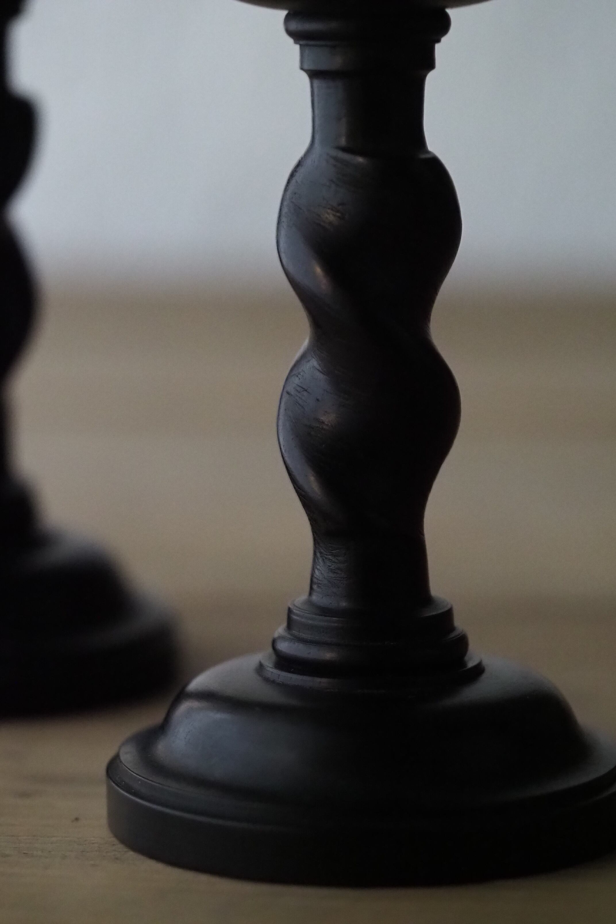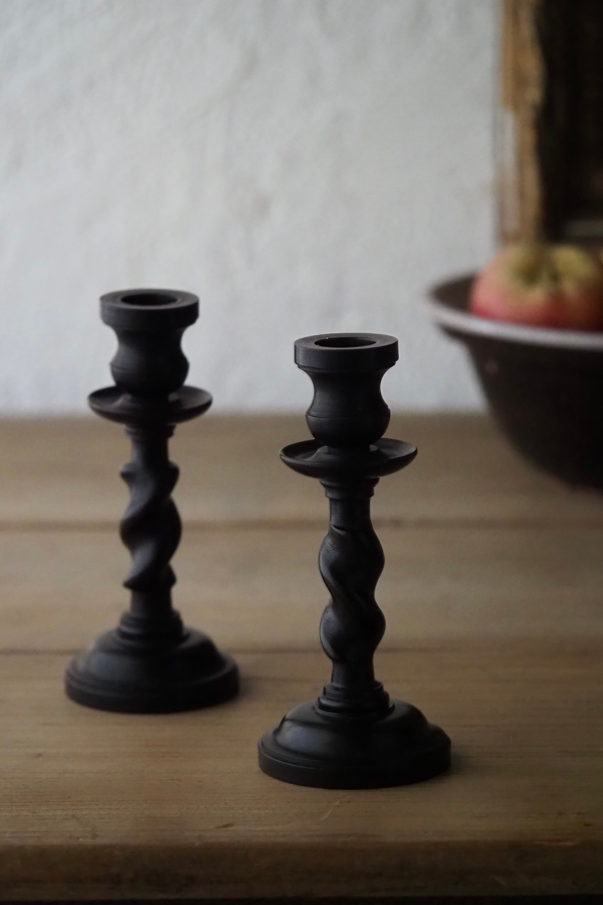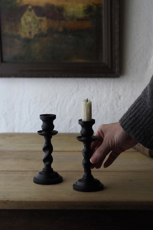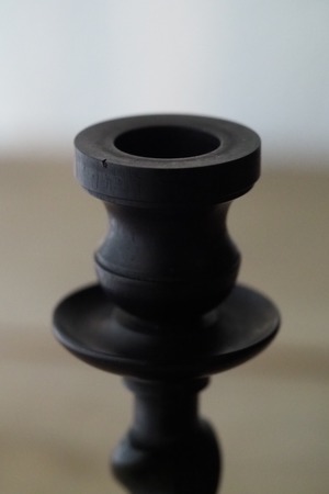 その黒檀材で作られたペアの小さな燭台。