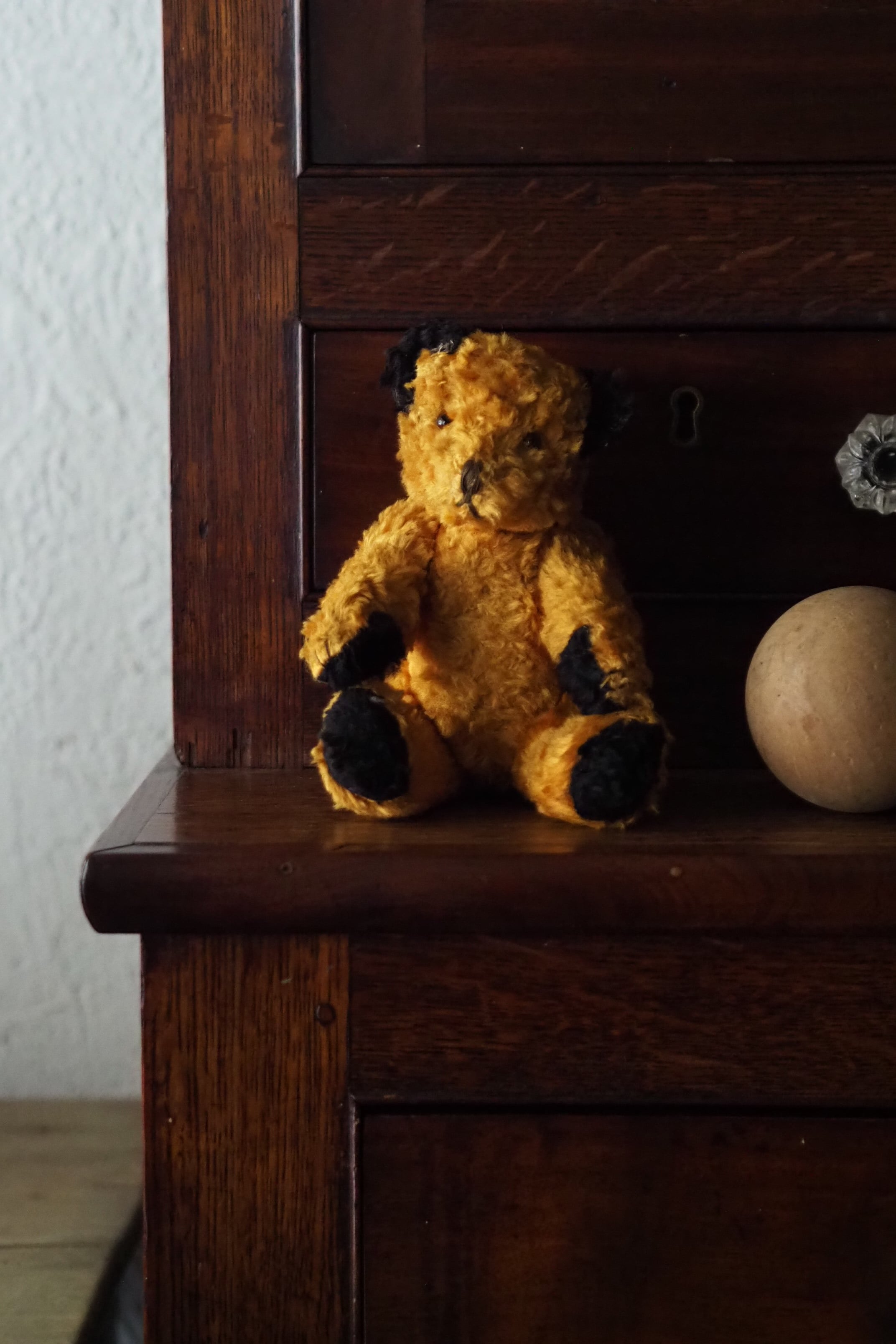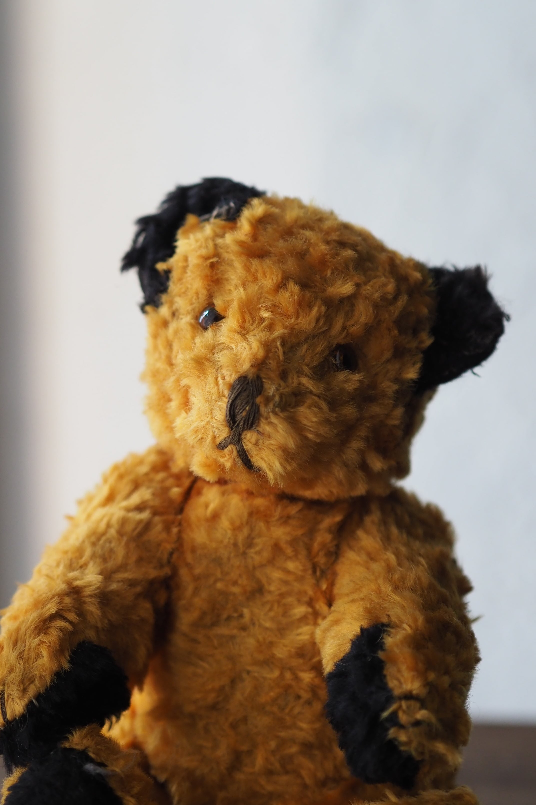 お座りも上手、20世紀半ばのイギリスからやってきた黒耳くろパットのスーティーベア。