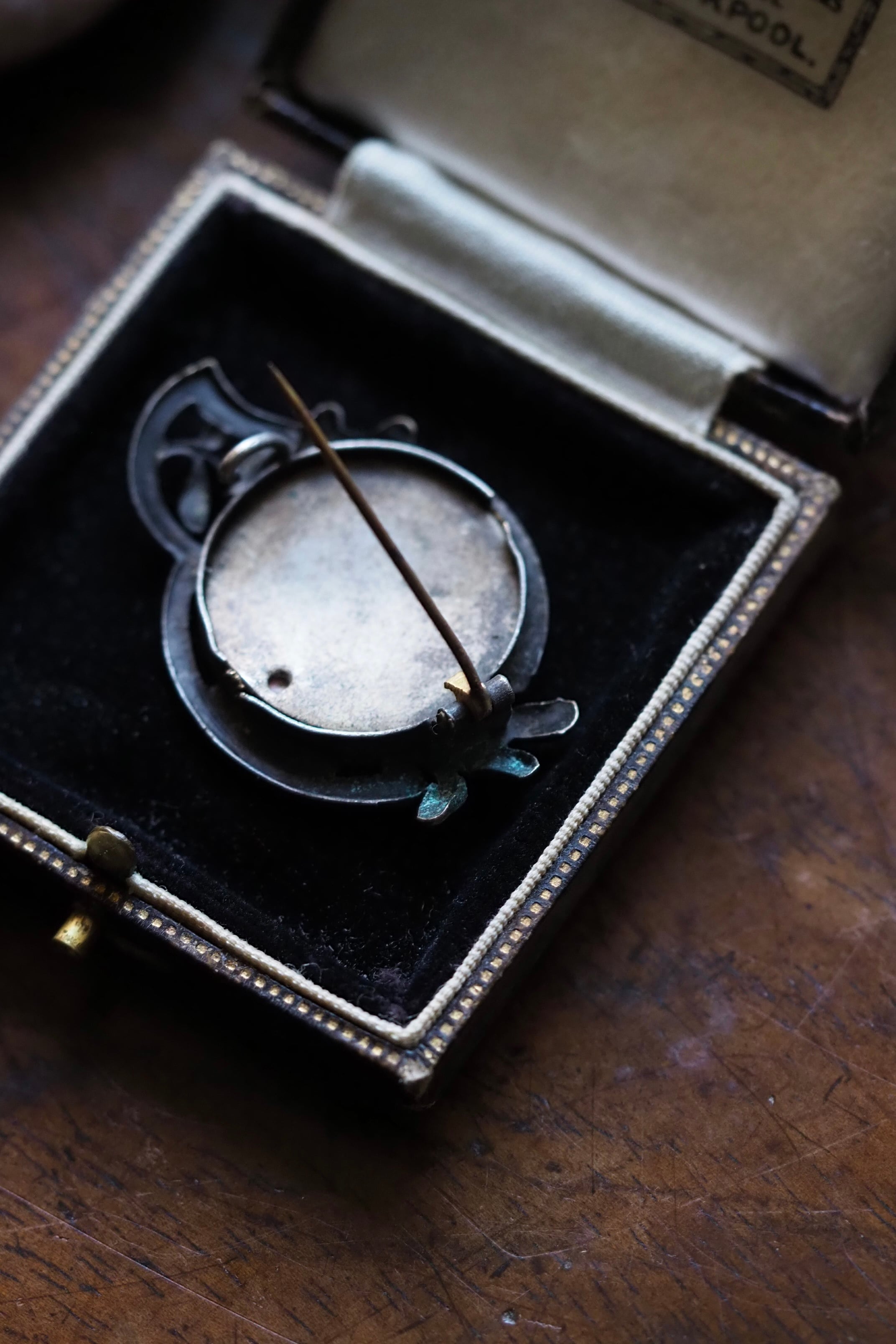 20世紀初め、アール・ヌーヴォーの曲に流れる宿木がモチーフになっているガラス入りの小さなブローチ。