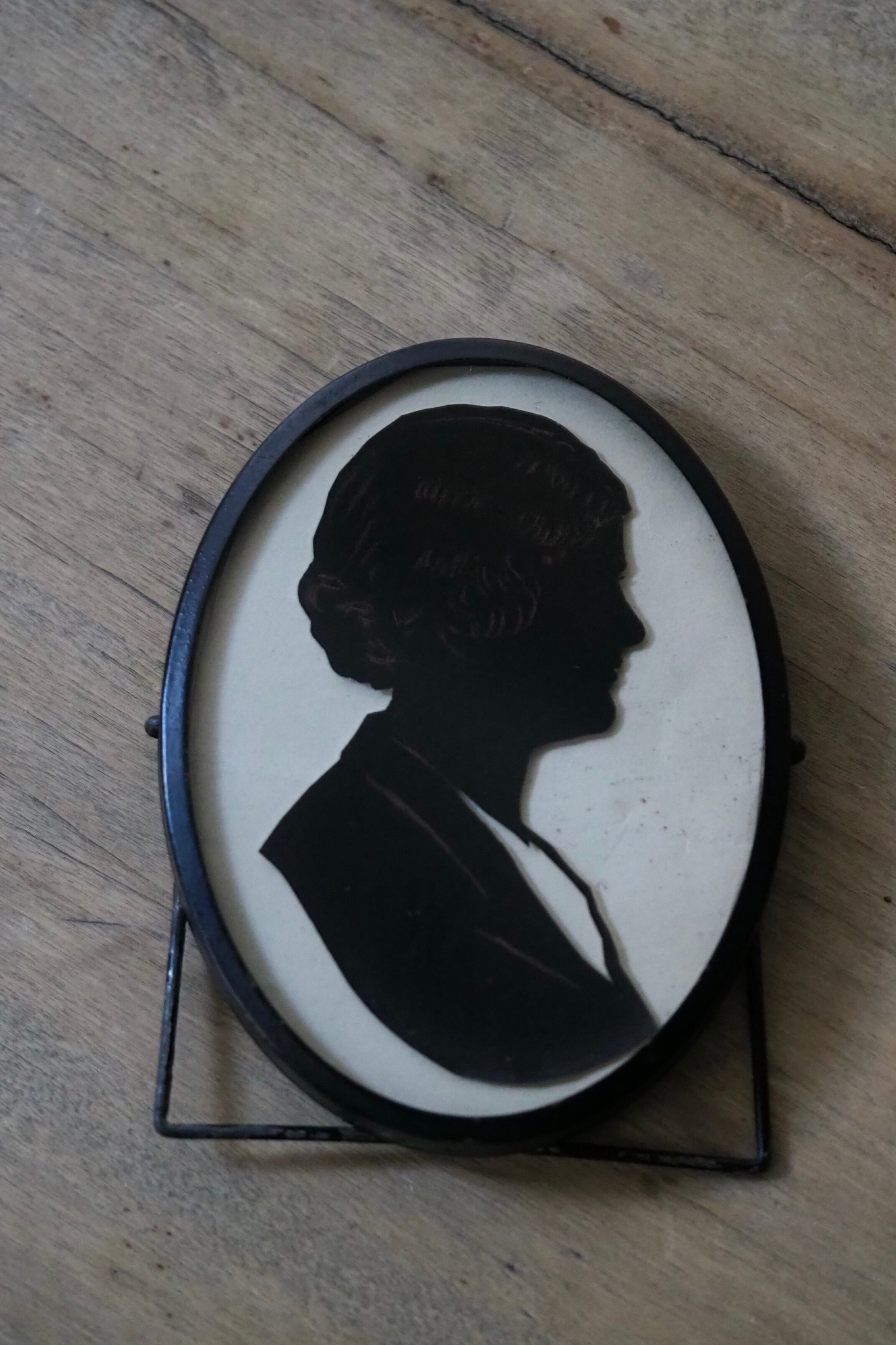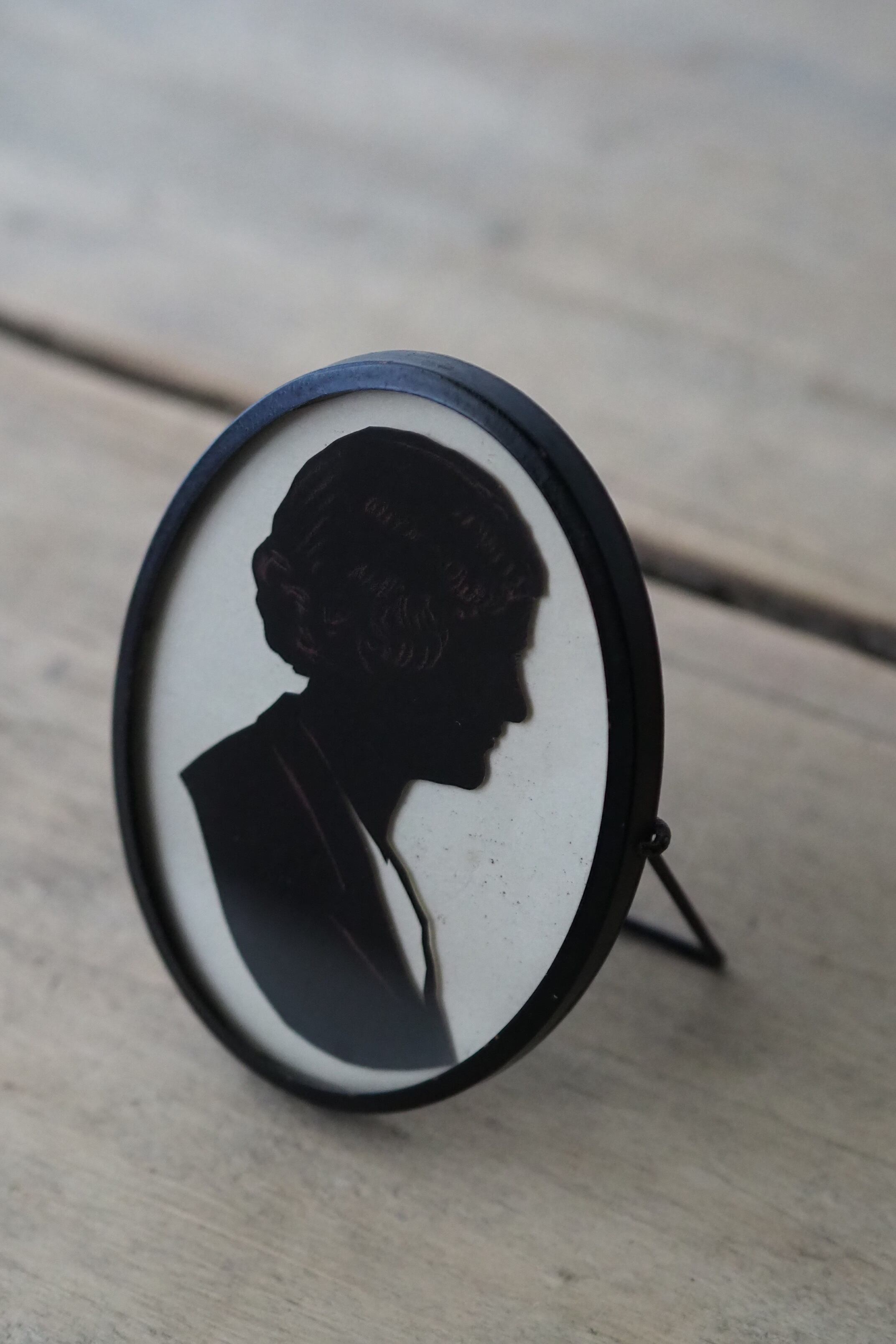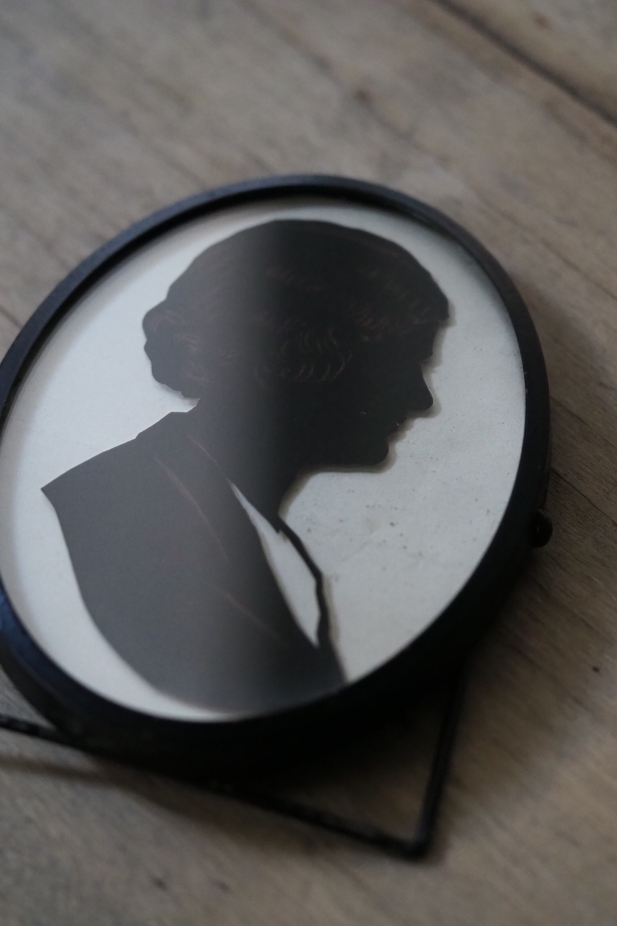 横顔物語る、、シックな趣きの切り絵シルエットを封じたスタンドフレーム。