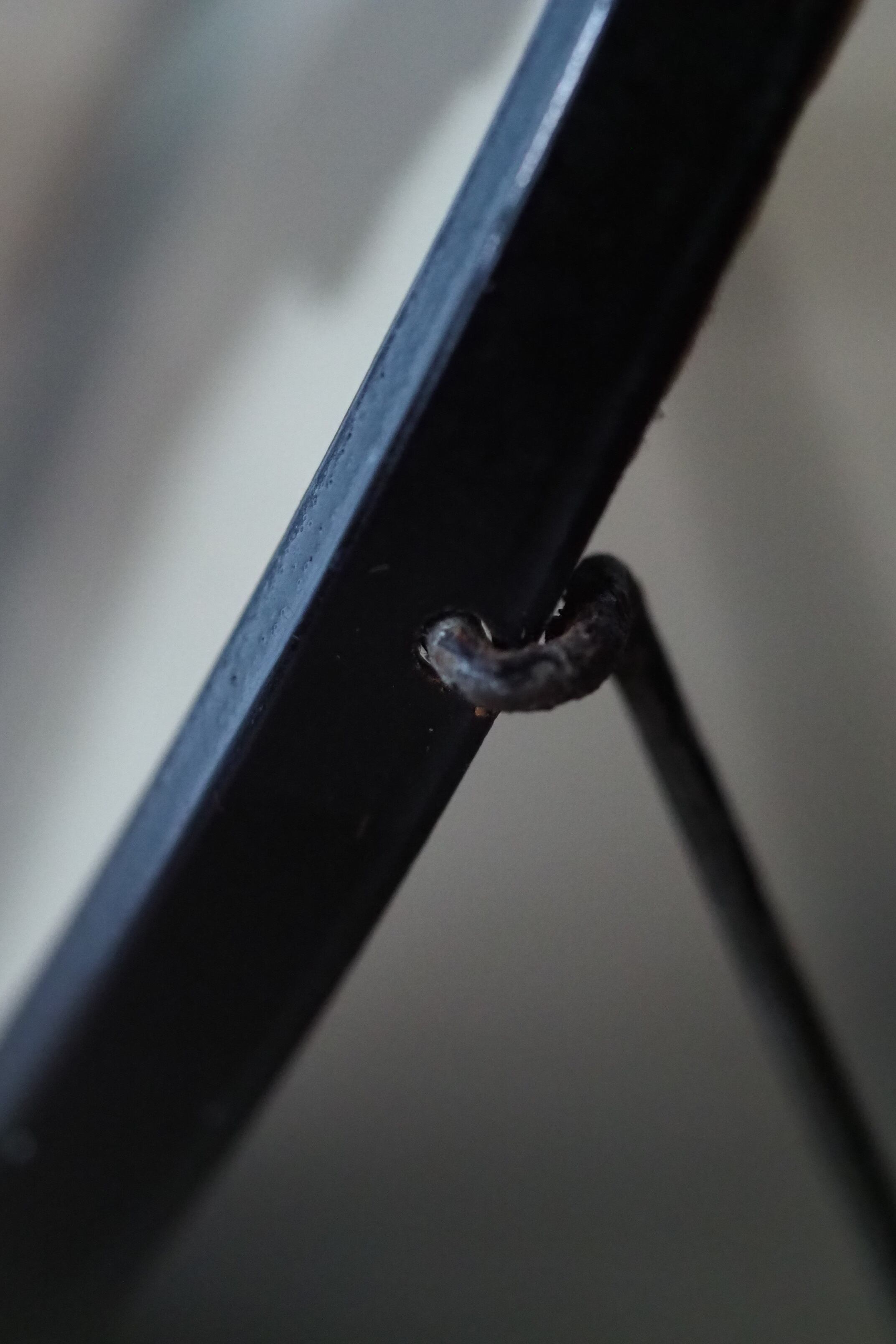 ガラス入り、フレームとスタンドの脚は金属製で一部塗装が擦れた箇所が御座います。