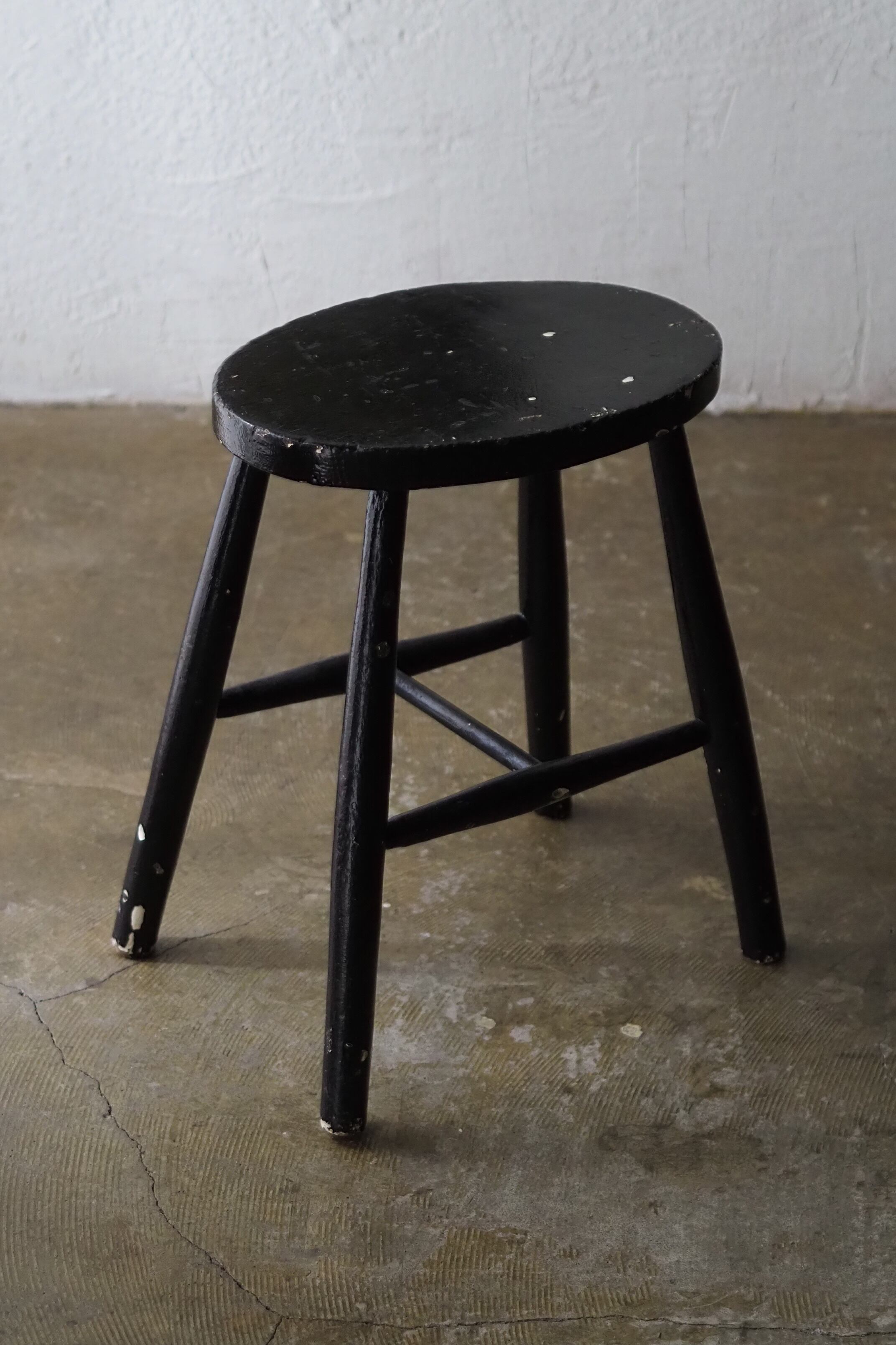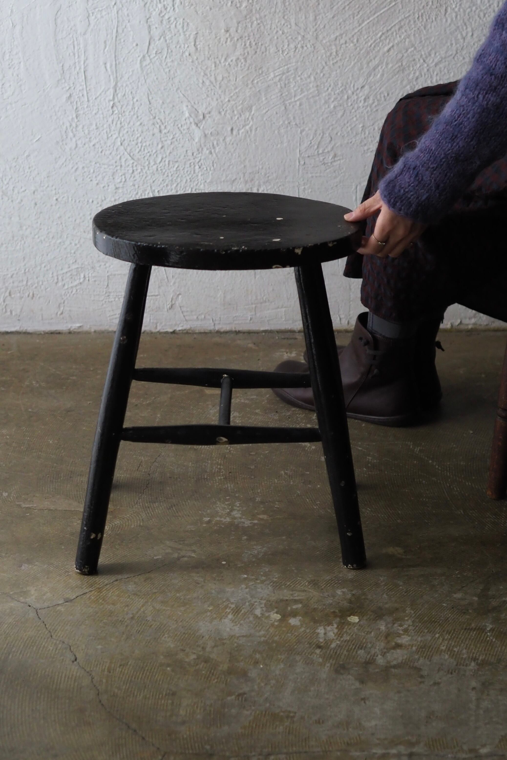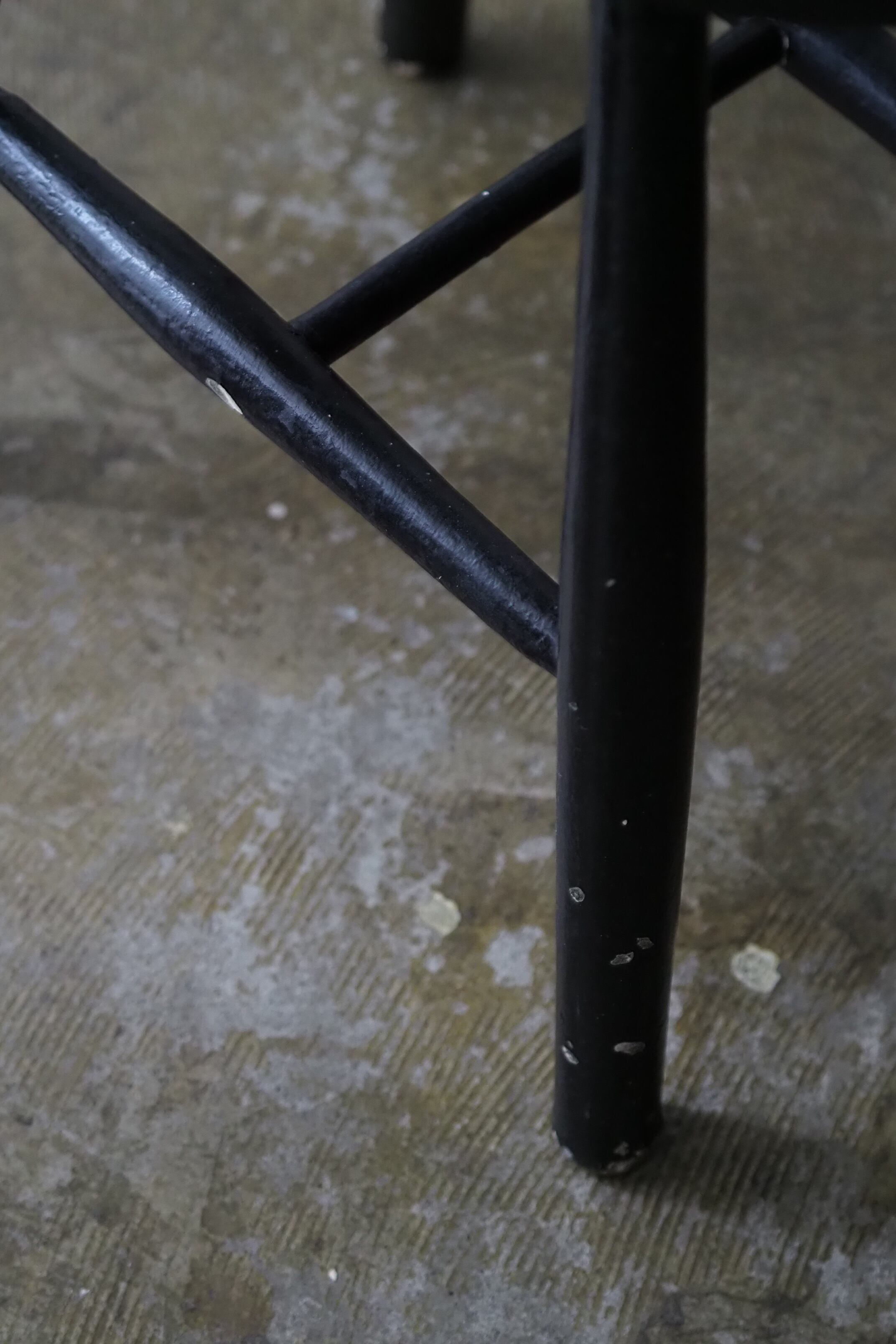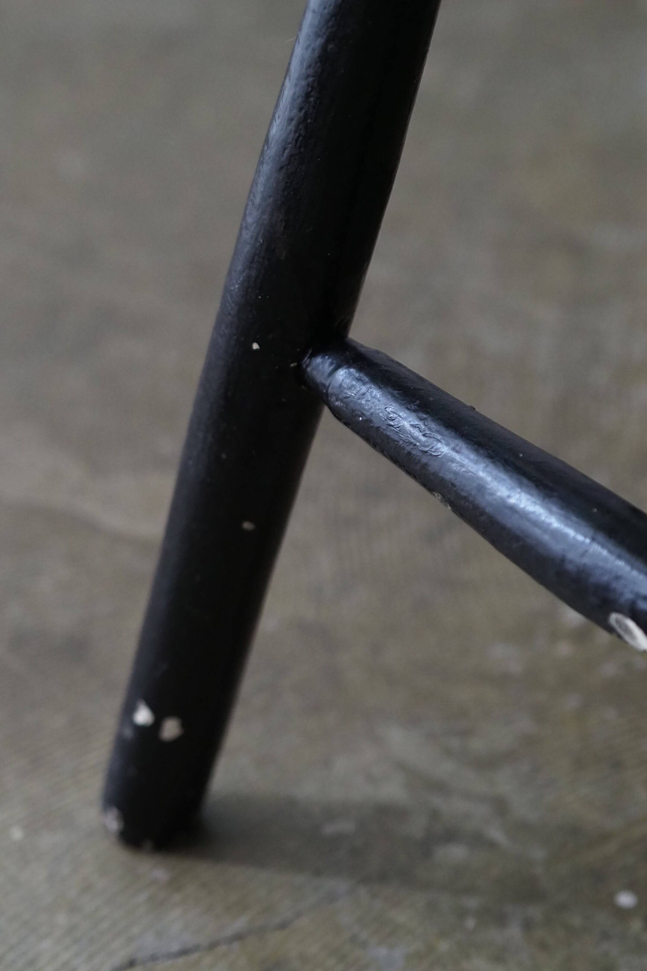 イギリスの20世紀初頭位の一脚、黒塗装を重ねた白ペイントの下跡がちらほらと。
