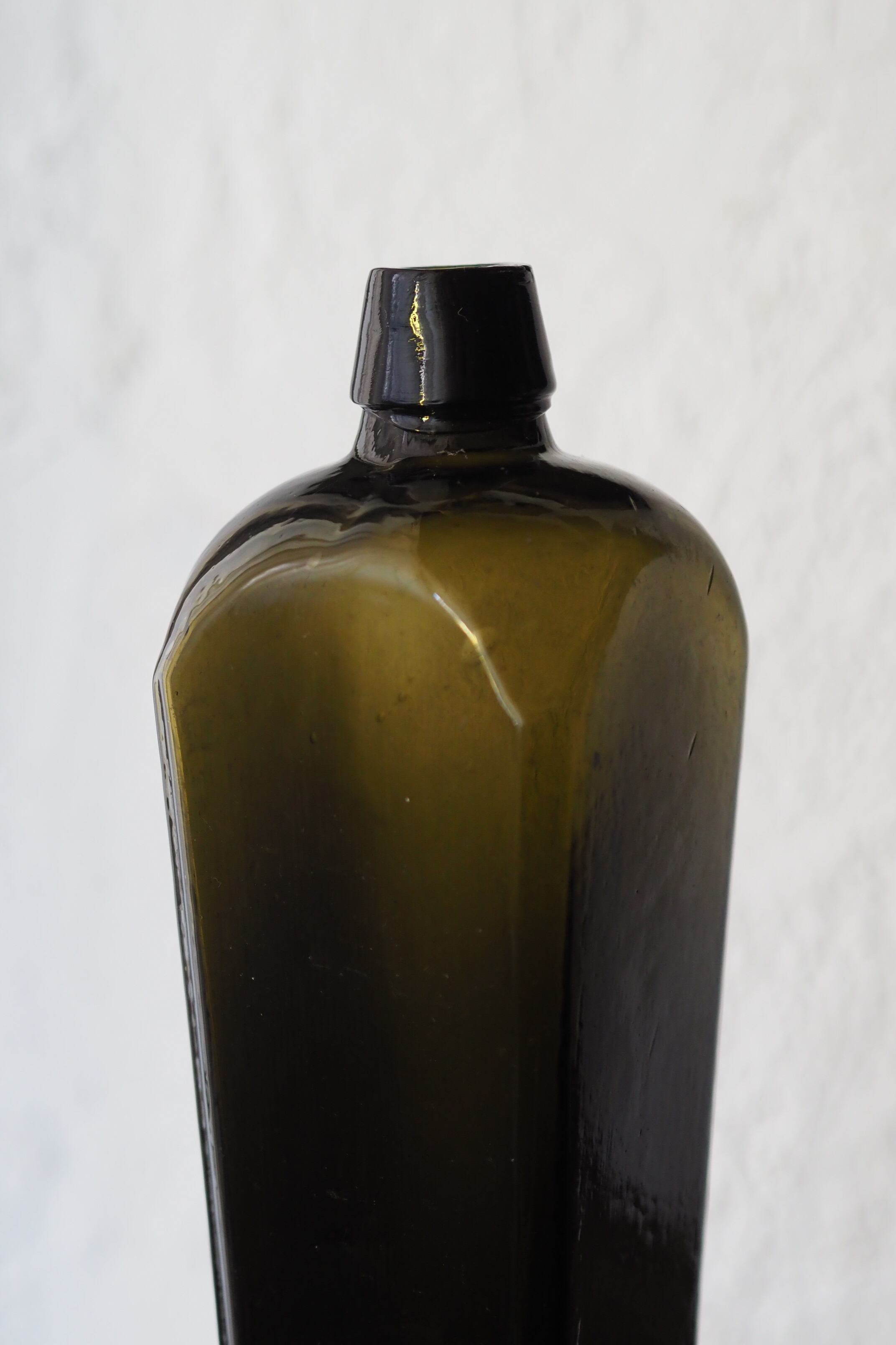 ボトムに向かいシェイプしたフォルム。まるで肩を張った人みたい、個体であって有機的な出立ちのイギリス製ジンボトル。